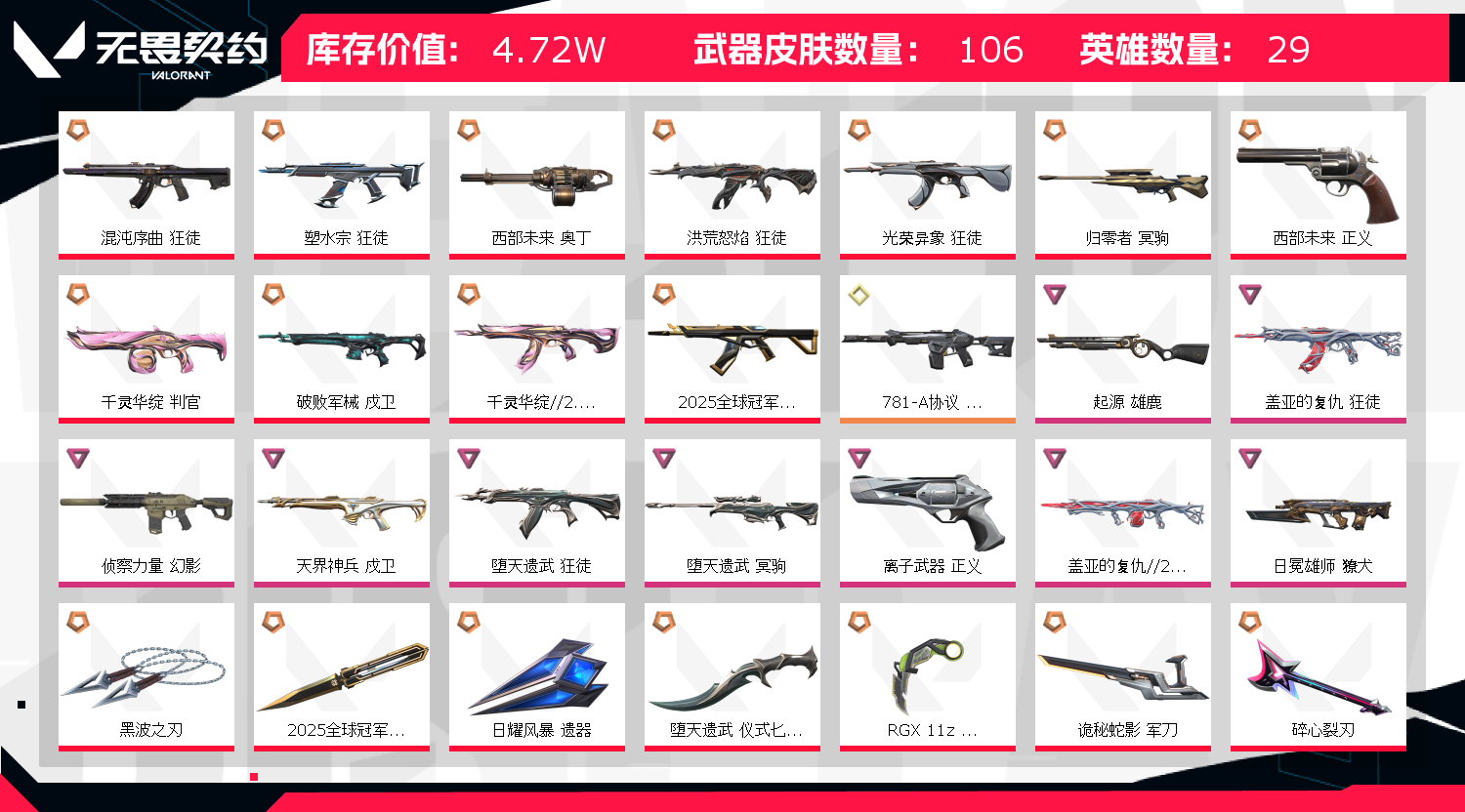 • 武器皮肤数量: 106