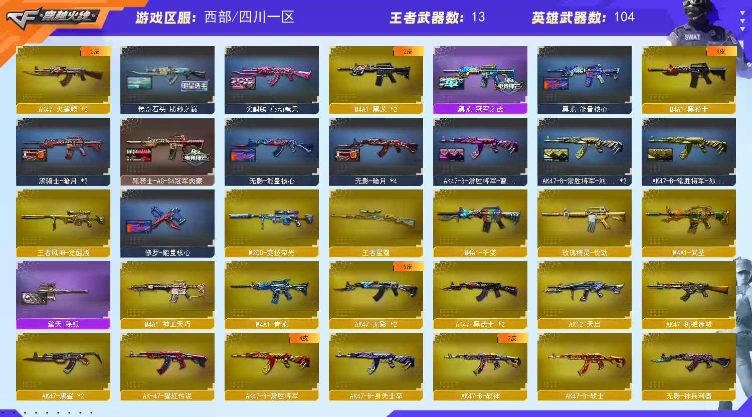 • 游戏区服:穿越火线 / 西部 / 四川一区