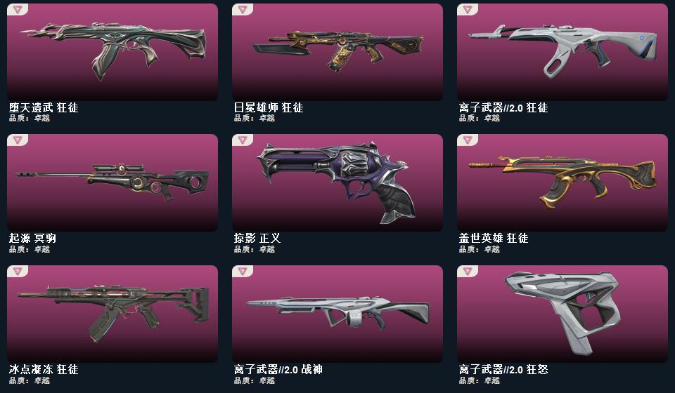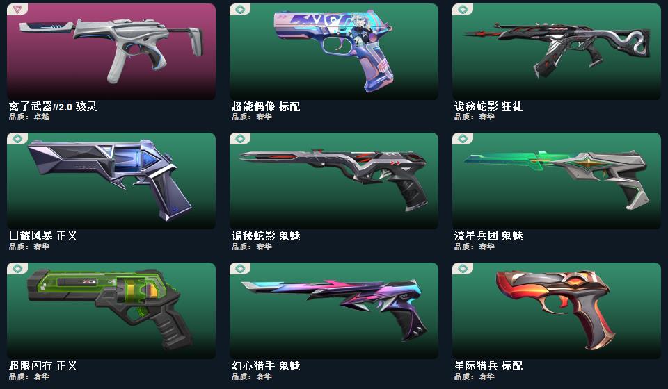 超时空卫队狂徒 诡秘蛇影军刀 VCT25XEDG标配 离子武器2.0爪刀 神圣领域战刀 西部未来正义 天玄刀 艾沃莉的梦之翼鬼魅 日冕雄狮狂徒 冰点凝冻狂徒 离子武器2.0狂徒 离子武器2.0战神 离子武器2.0狂怒 离子武器2.0骇灵