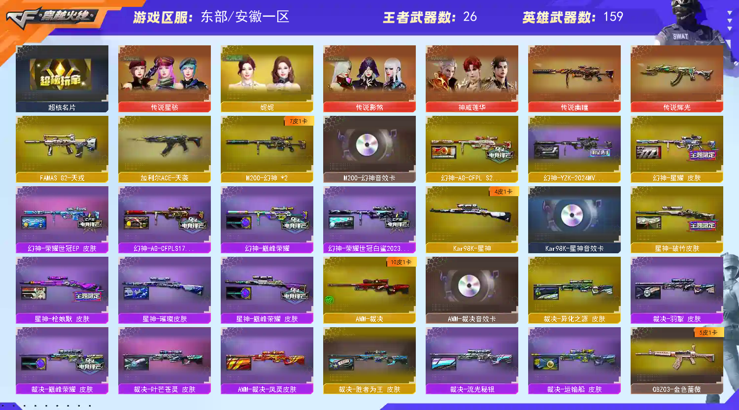 顶配CF号|160V+26王者|幻神7皮裁决10皮|3传说+幽瞳|可排位