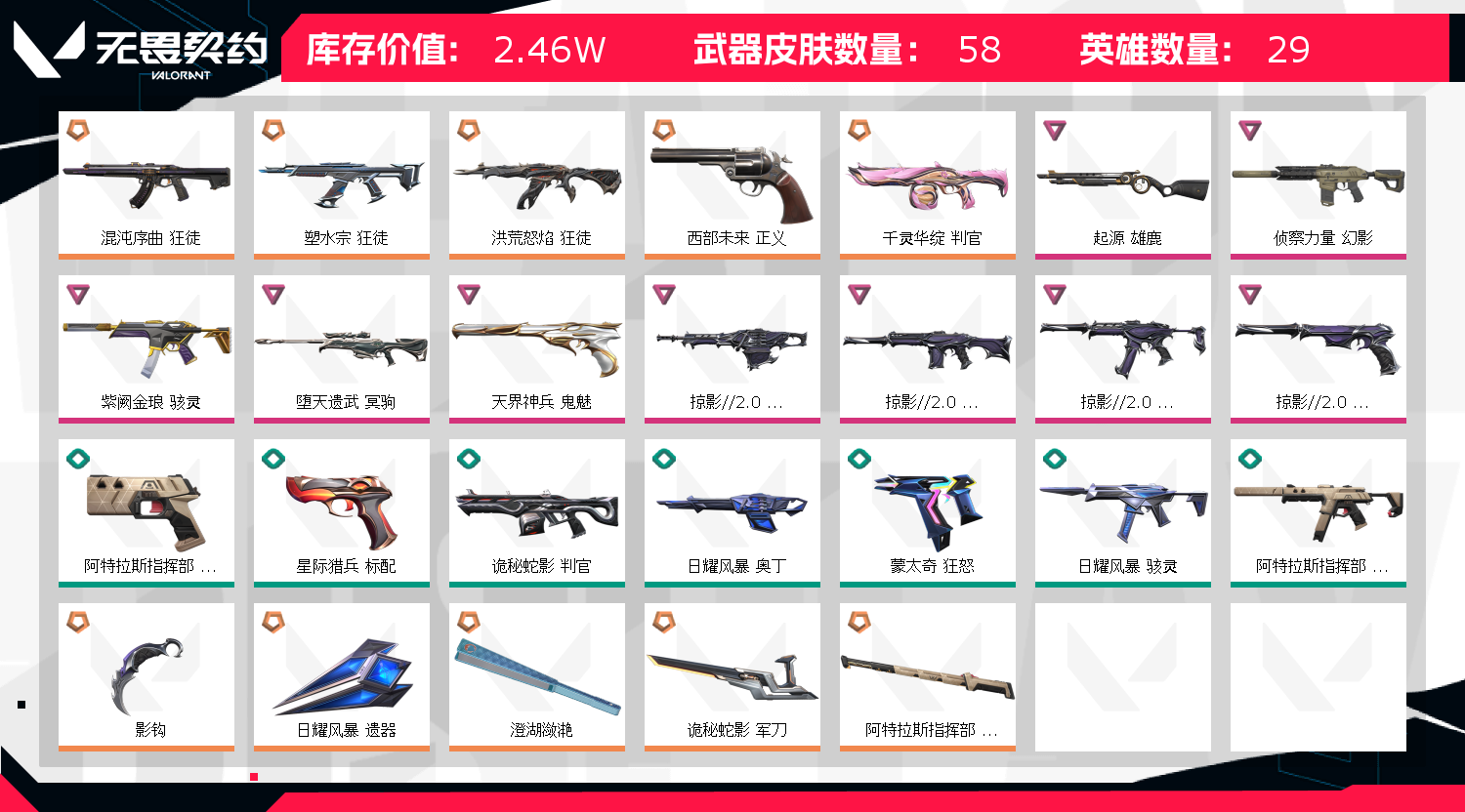• 皮肤资产价值: 24620
