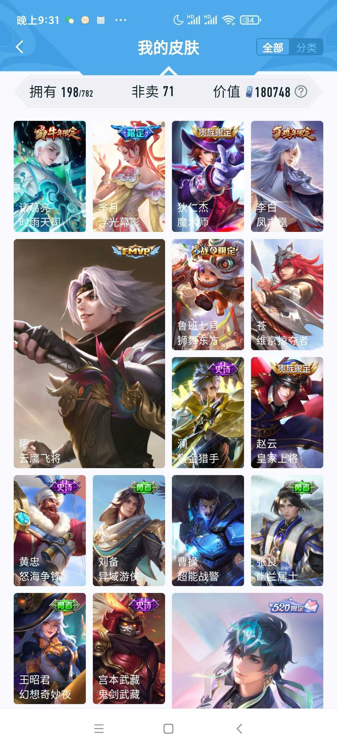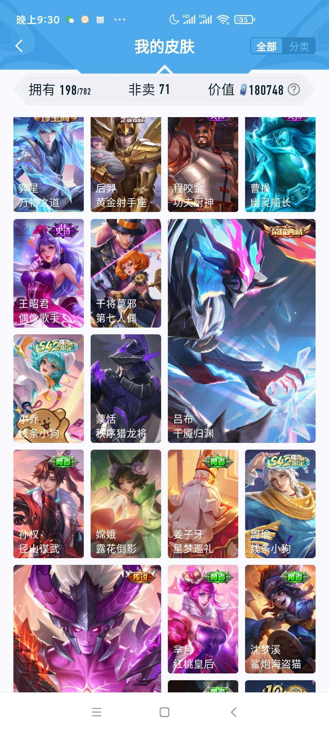 V10、550皮14水、吕布典藏-千魇归渊、云缨-神骥·越千峰、怪盗基德、伽罗星传说红枫、瑶典藏拾光映像、冥王哈迪斯、、龙年限定、齐天大圣
