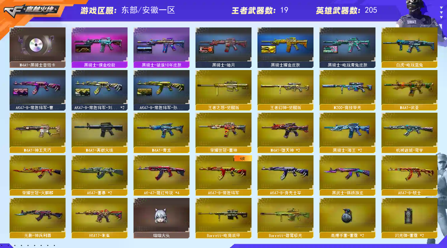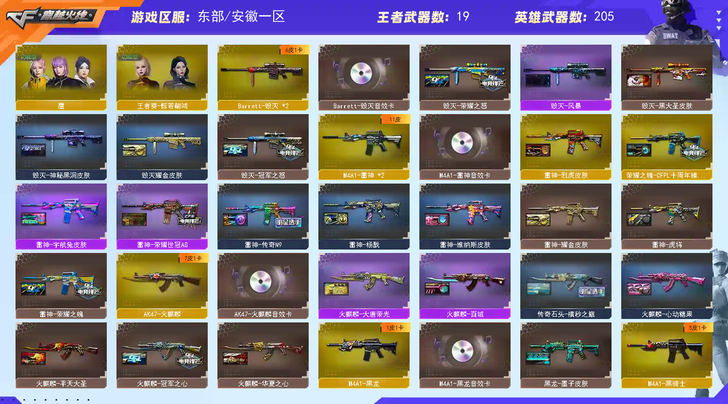 女帝+暗裔幻神白虎各种热门枪械宠儿冠军皮齐全音效卡齐全;