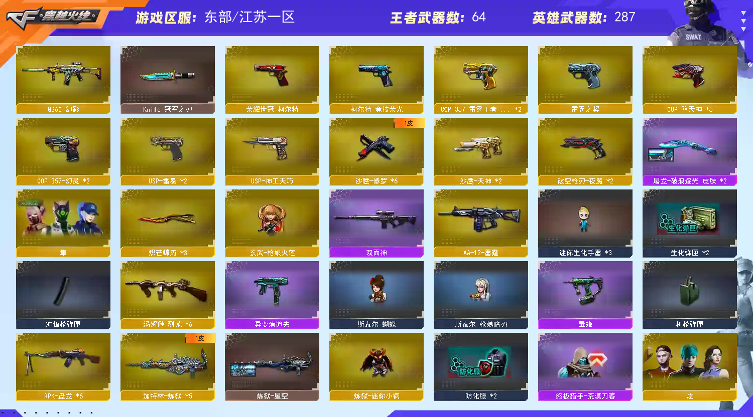 • 游戏区服:穿越火线 / 东部 / 江苏一区