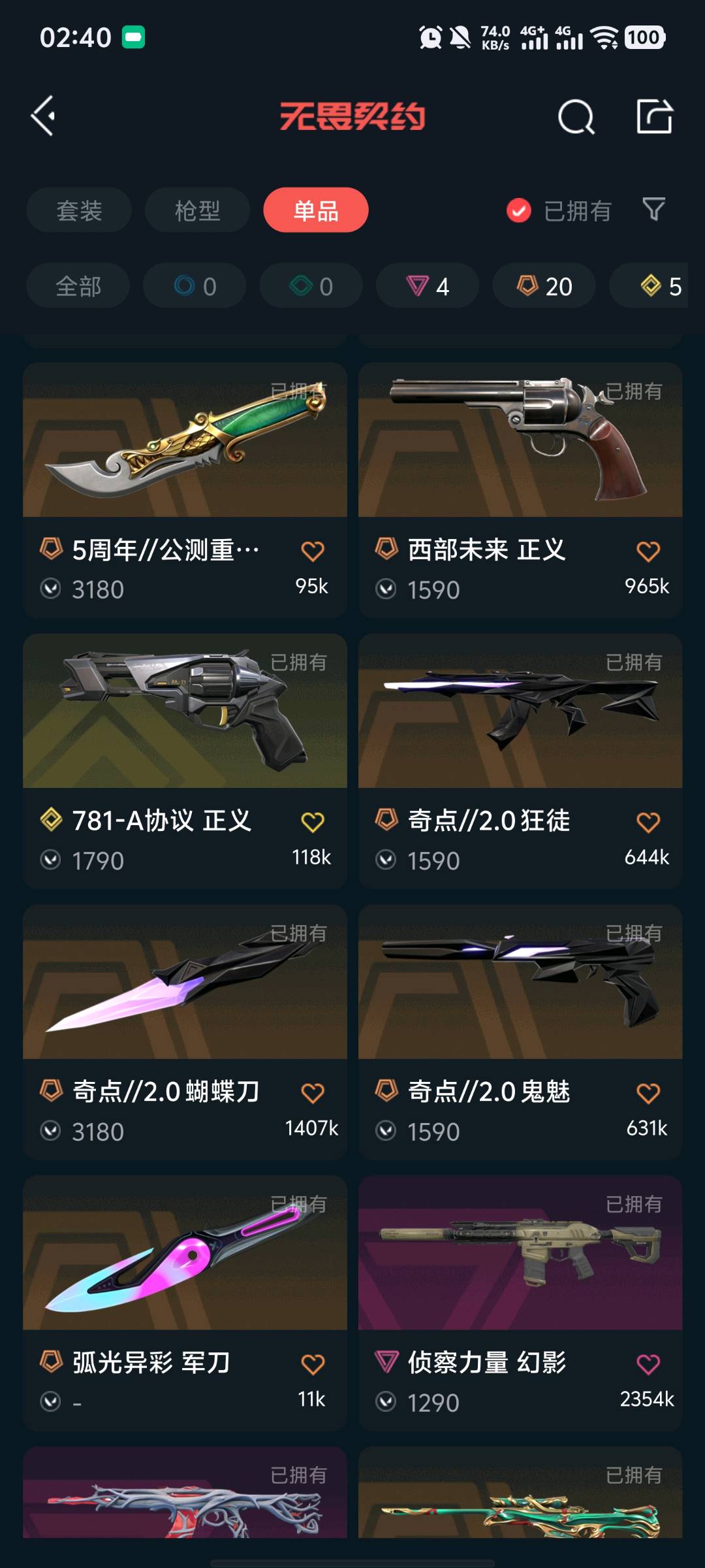• 传奇数量: 20
