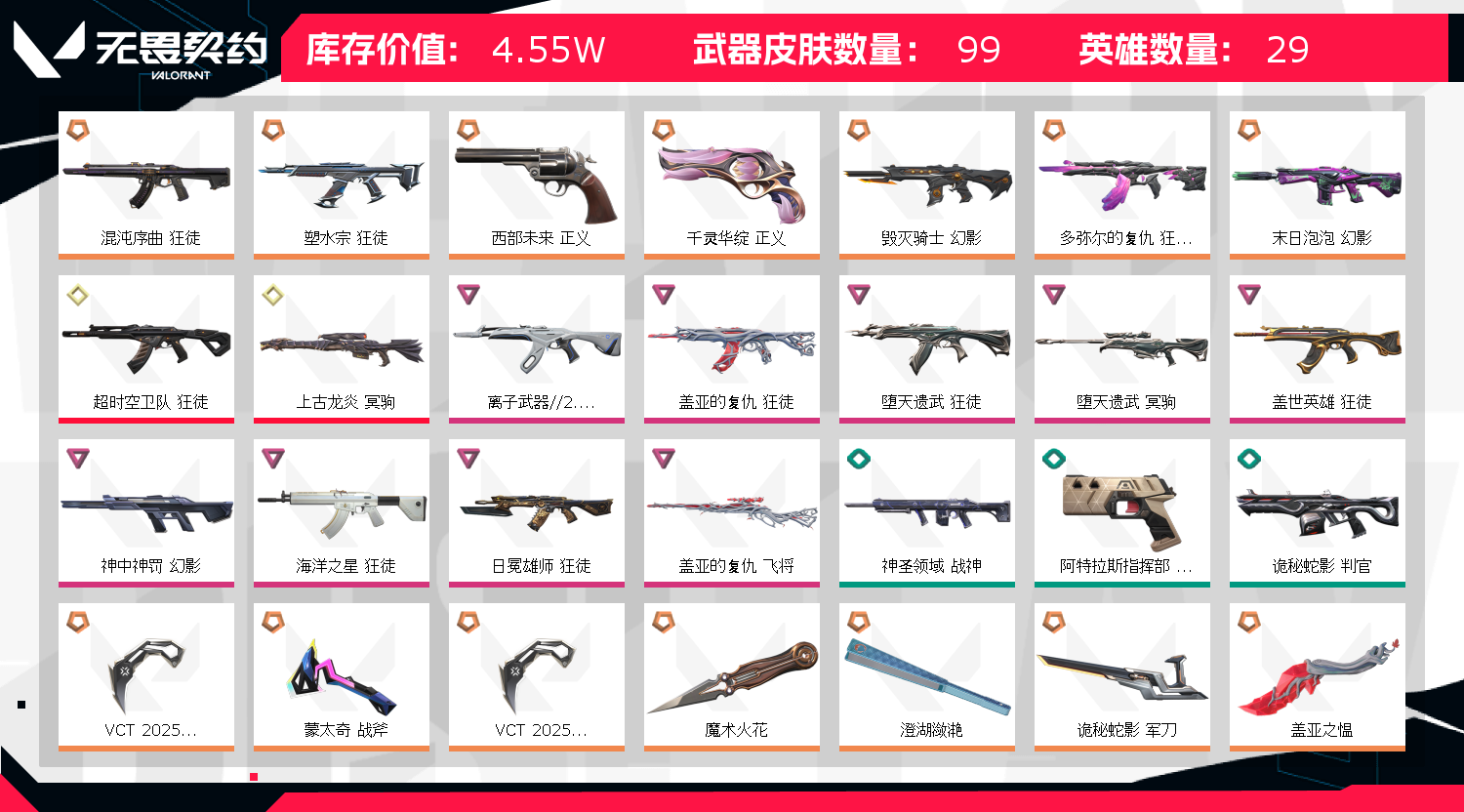 • 武器皮肤数量: 99