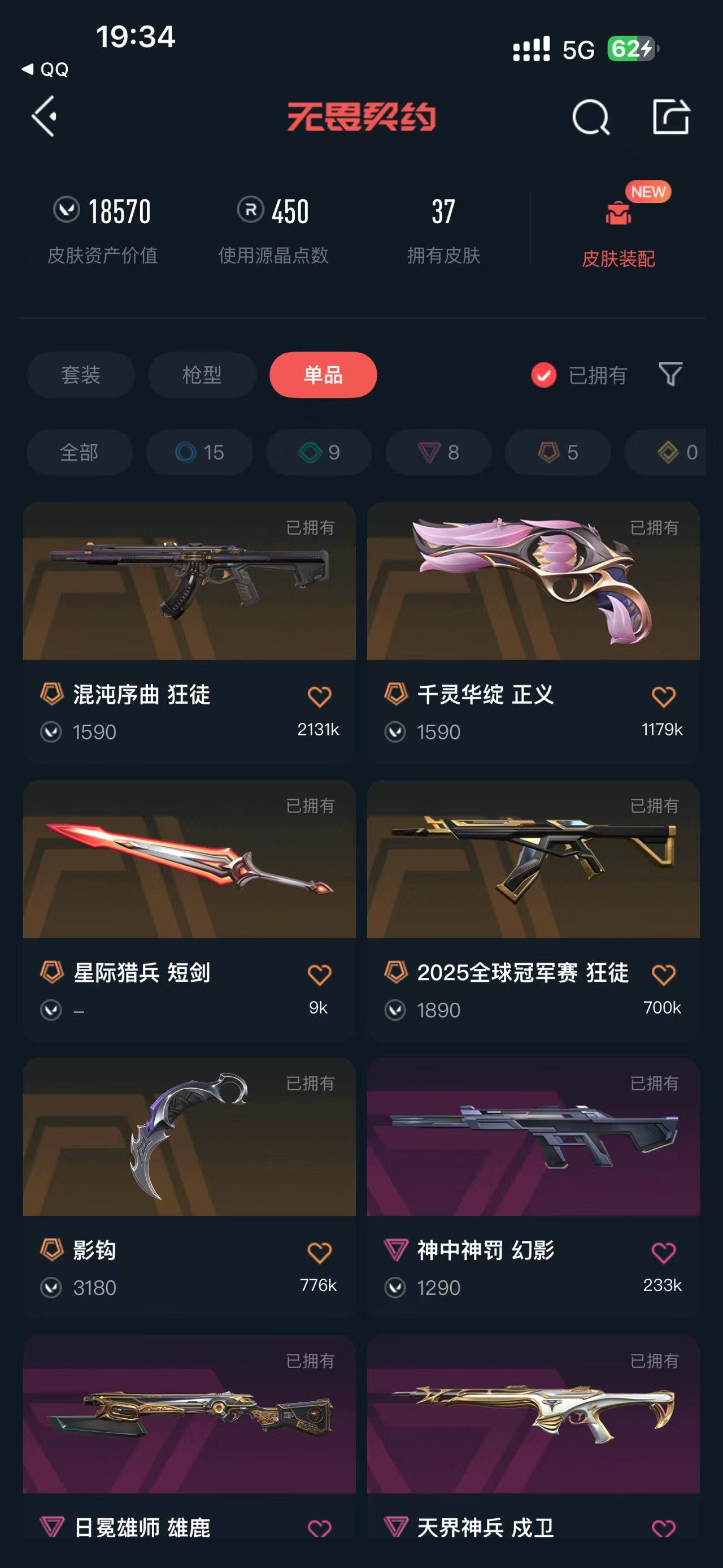 • 皮肤资产价值: 18570