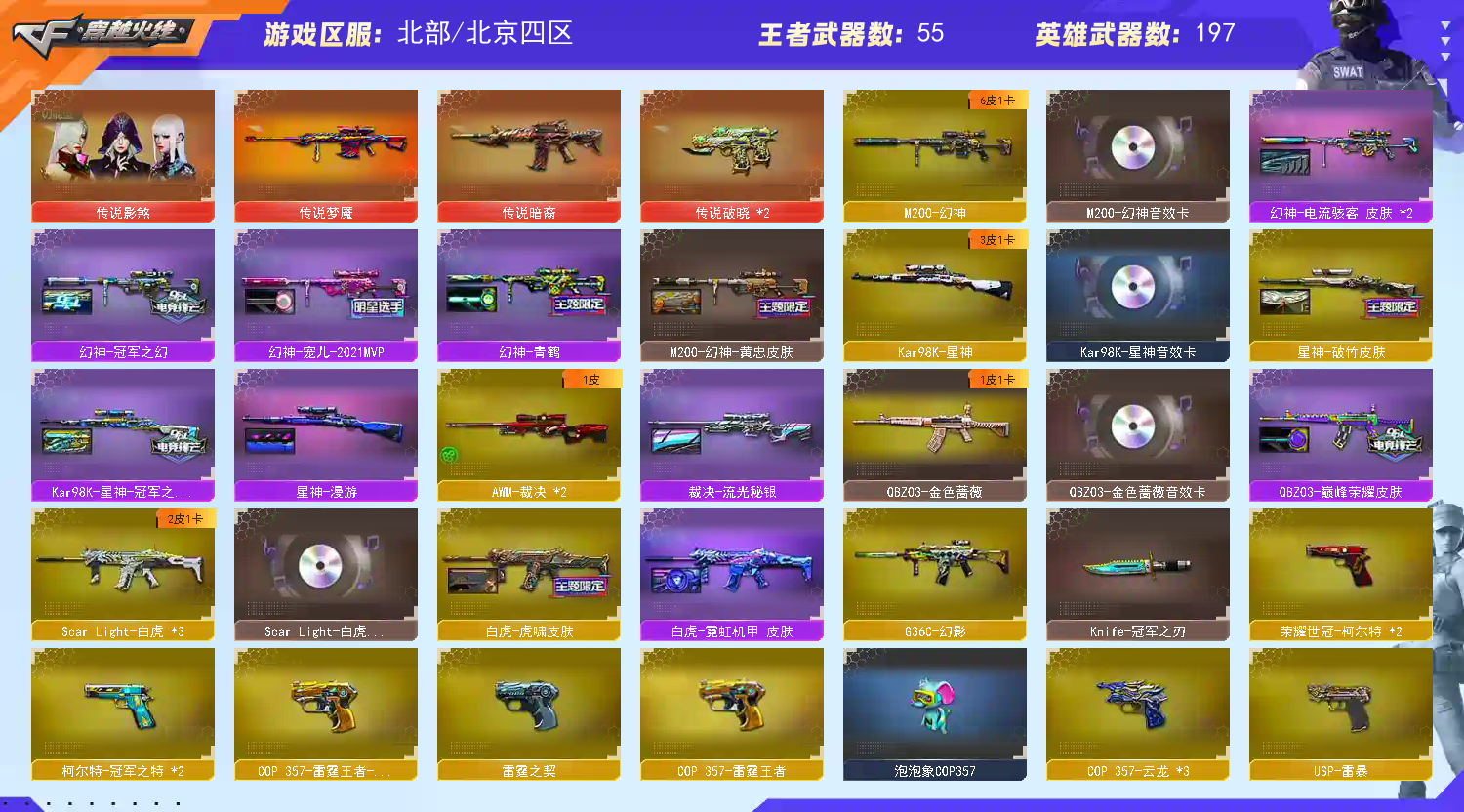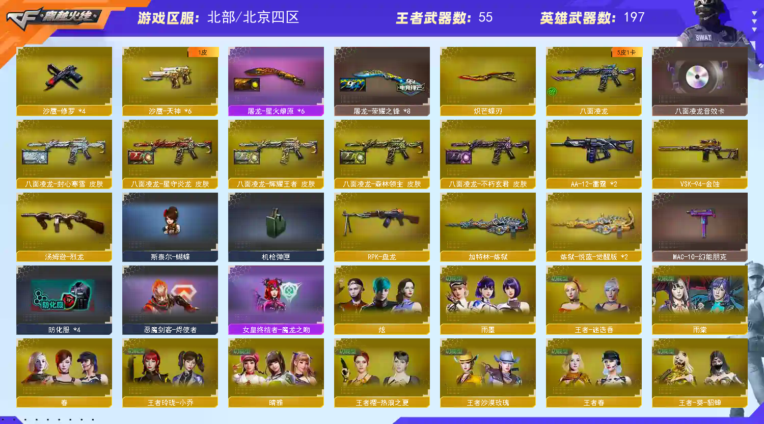 首页 > 租号大厅 > 穿越火线 > 北部/北京四区 > 传说影煞⚡6皮音效幻神⚡98k星神白虎裁决⚡带皮音效QBZ⚡炽芒蝶刃全手枪⚡喜欢收藏