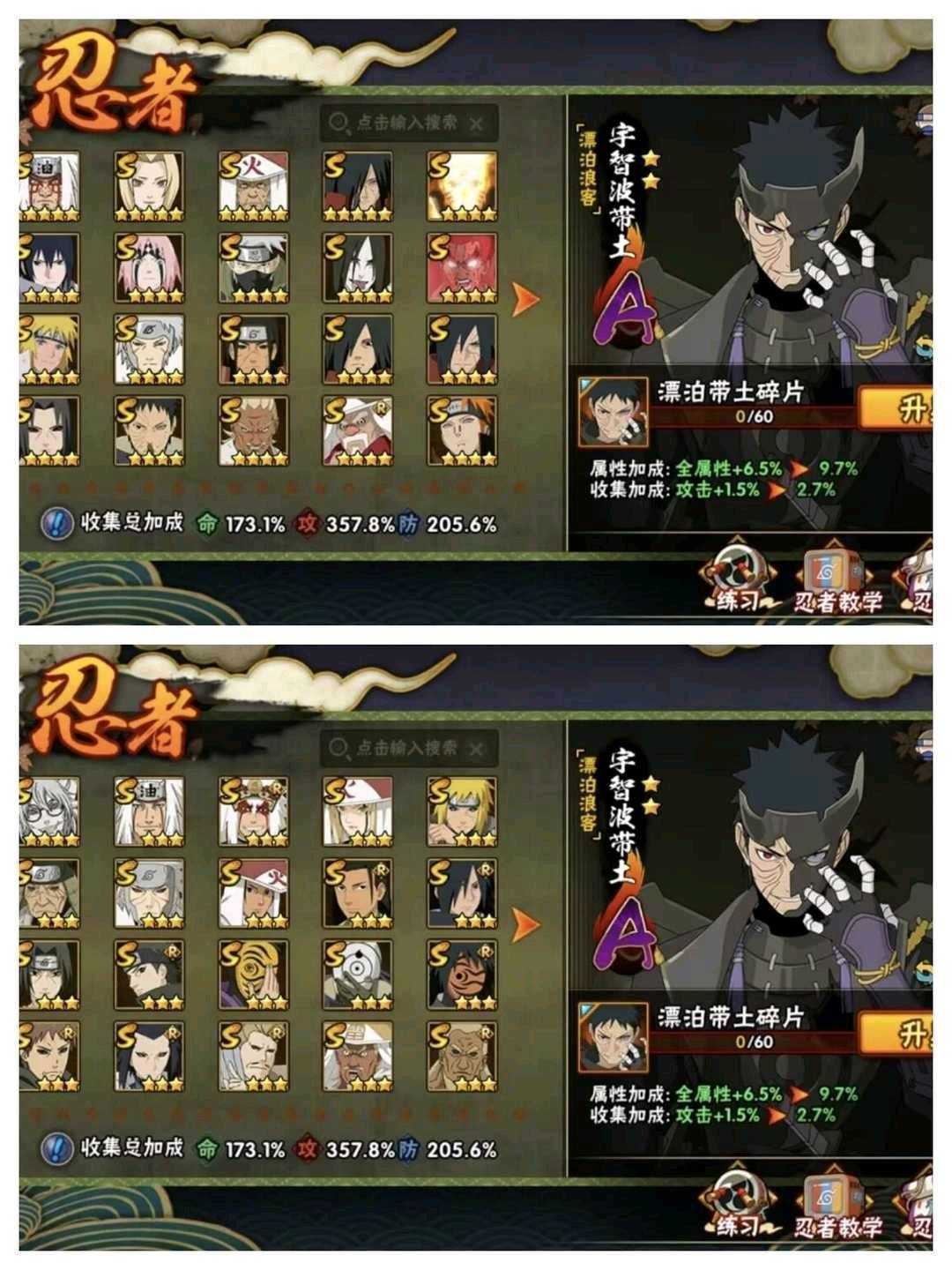 47S全忍者✨2100W战力✨神驹斑✨十尾带土✨侠影佐助✨漂泊带土✨天道超