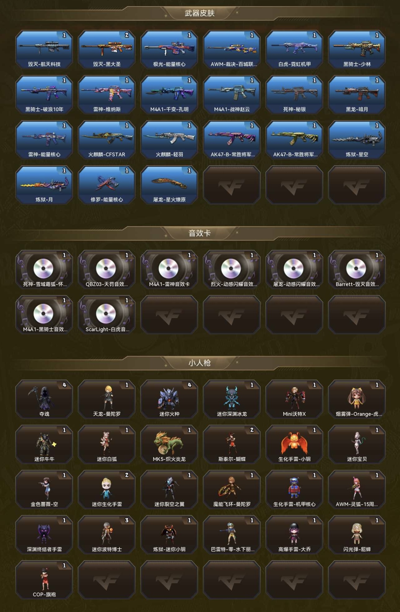 禁止利用账号进行开挂,使用辅助违规软件诈骗等违规操作。毁号行为涉及毁坏虚拟财产罪及计算机安全罪,请文明游戏素质游戏,让我们共建美好租号平台!;USP-雷暴,炽芒蝶刃,传说影煞,传说女帝,传说艾莉莎,RPK-盘龙,QBZ03-金色蔷薇,