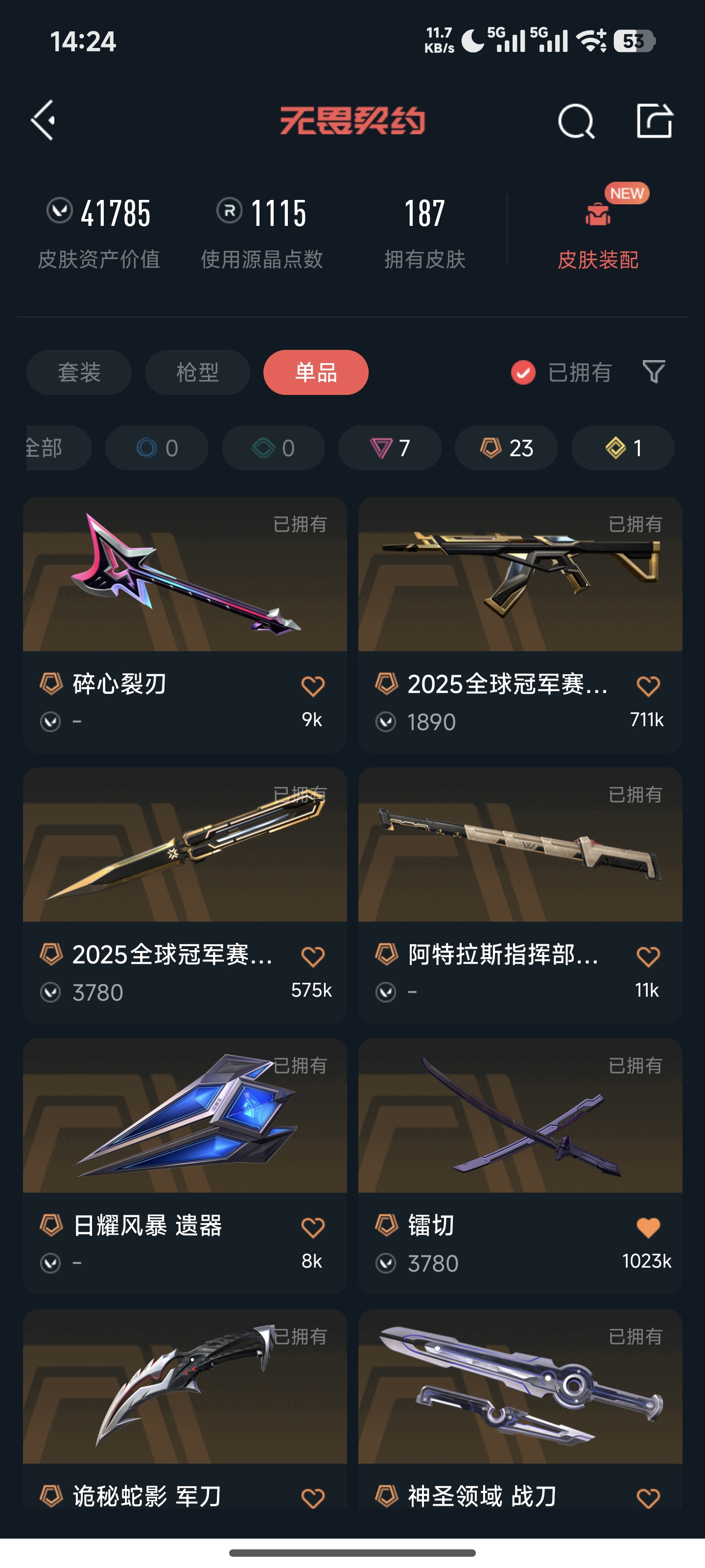 • 皮肤资产价值: 41785