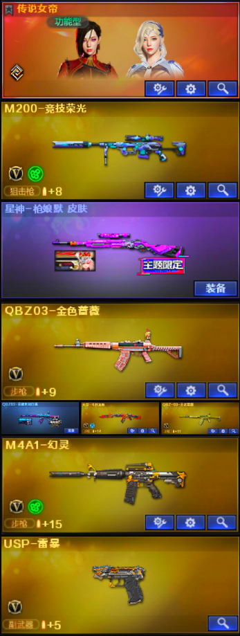 【东.部】爆破天花板♥女帝竞技荣光幻神qbz带皮♥幻灵套装♥4把高质量手枪usp雷暴主流武器三件套;USP-雷暴,传说女帝,电竞教官-云悠悠,王者沙漠玫瑰,QBZ03-金色蔷薇,