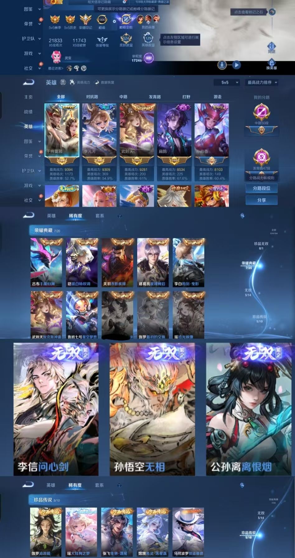 巅峰1800✨3无双5珍品51传说✨踏浪归问心剑✨苍流箭全马年✨千魇归渊无相✨千山共赴九山相柳大耳狗