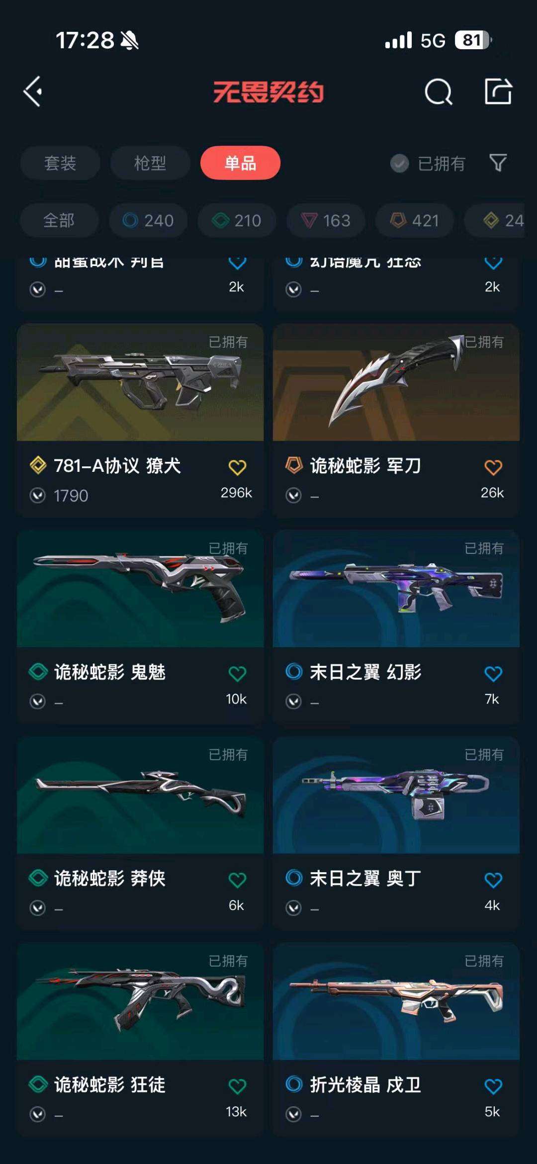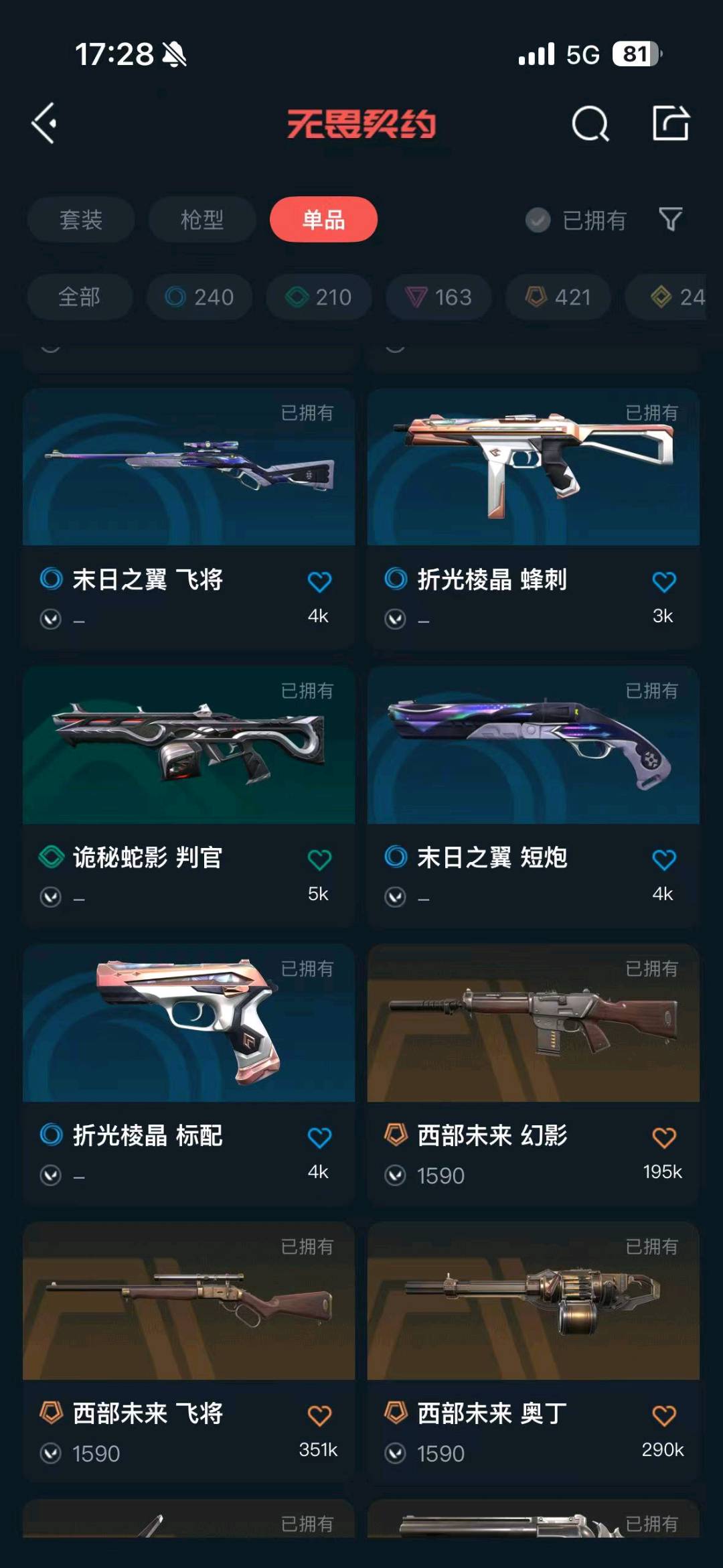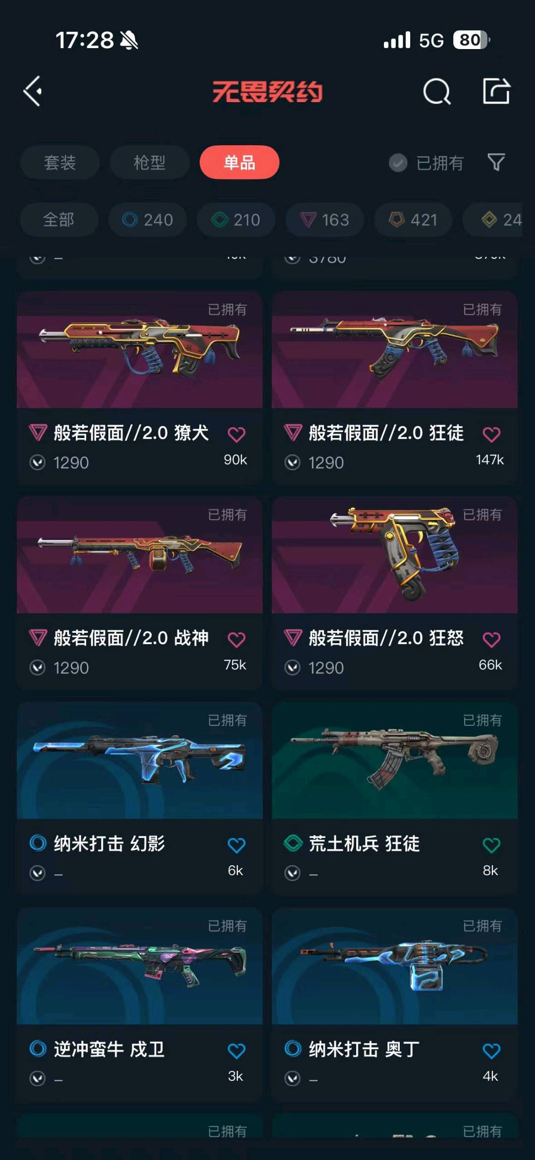 首页 > 租号大厅 > 无畏契约-wegame > wegame/wegame > ✅可排位✅6.3w库存135皮✅掠影套✅奇点套✅显卡2.0套✅暗夜怪谈套