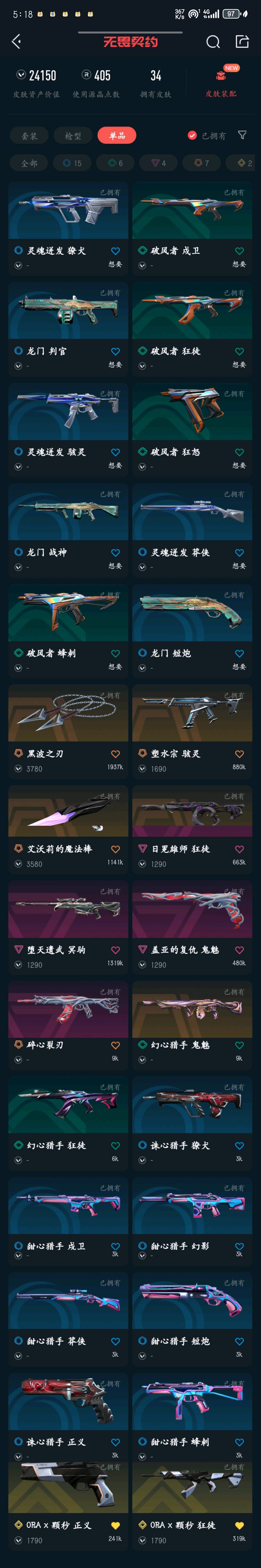 • 皮肤资产价值: 24150