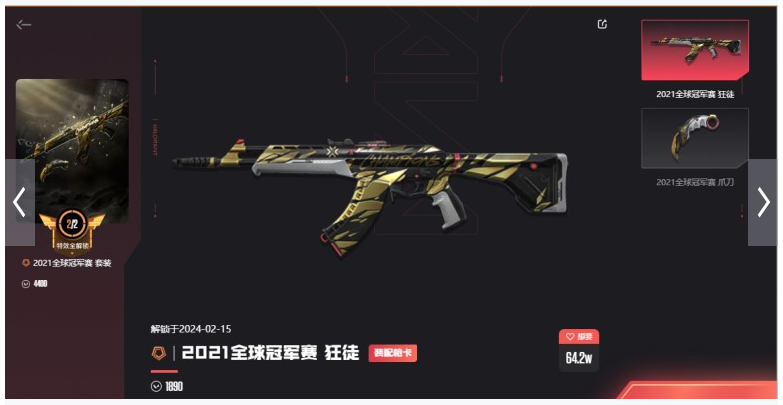 亮点皮肤(4) 狂徒-2021全球冠军赛,爪刀-2021全球冠军赛,幻影-2022全球冠军赛,蝴蝶刀-2022全球冠军赛