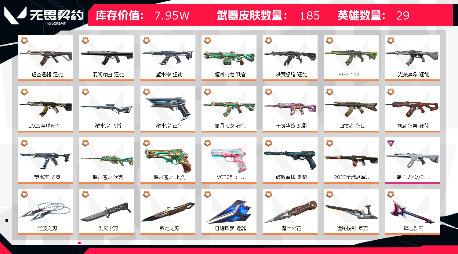 - 武器皮肤数量: 185