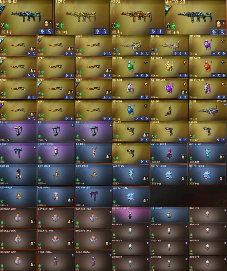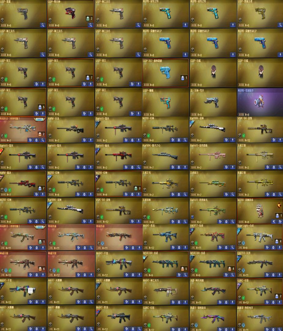 四防神威,四防影刹,狮子✖️6,蝴蝶刀✖️10,娃娃雷✖️10,龙宝✖️2,鲨鱼✖️3,玄武✖️4,序列号,幻神,裁决,音效卡,幻影,王者沧神,各种皮肤,各种动物枪小人枪,各种娃娃雷,贪吃蛇。;USP-雷暴,柯尔特-无冕之王,USP-雷暴王者,柯尔特-冠军之特,炽芒蝶刃,Knife-冠军之刃,传说影煞,