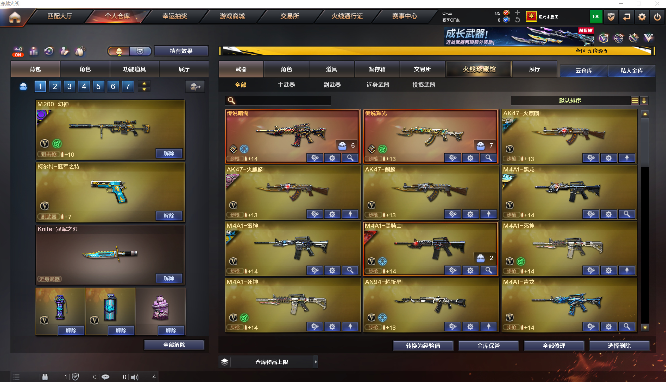 传说女帝暗裔辉光幻神巅峰冠军之薇刃特堕天神cop蝴蝶6烈毒蜂4盘龙3炼狱;柯尔特-冠军之特,Knife-冠军之刃,传说女帝,王者沙漠玫瑰,RPK-盘龙,QBZ03-金色蔷薇,M200-幻神,