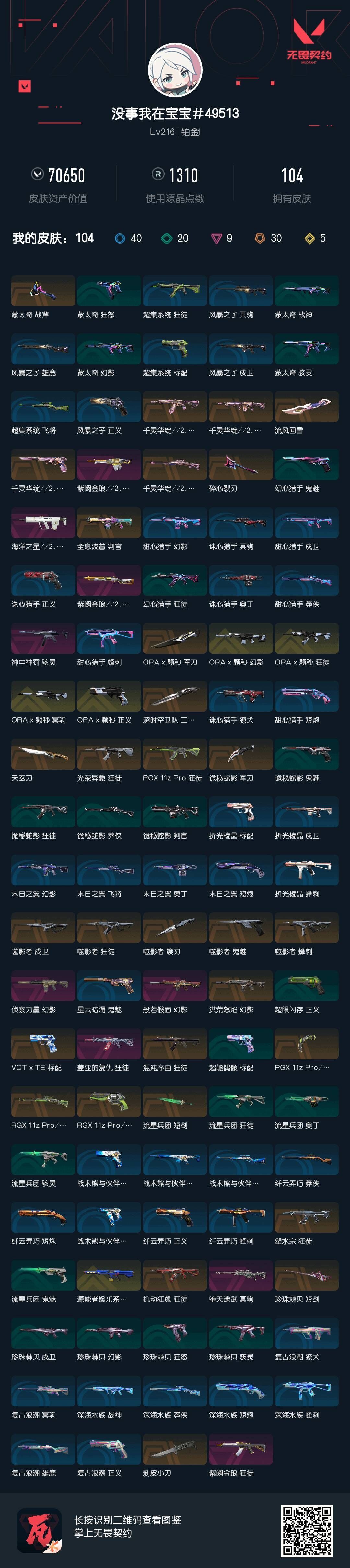 • 皮肤资产价值: 70650
