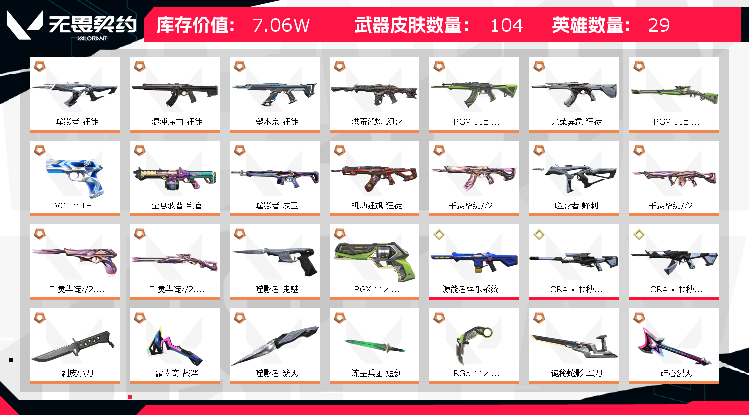 • 武器皮肤数量: 104