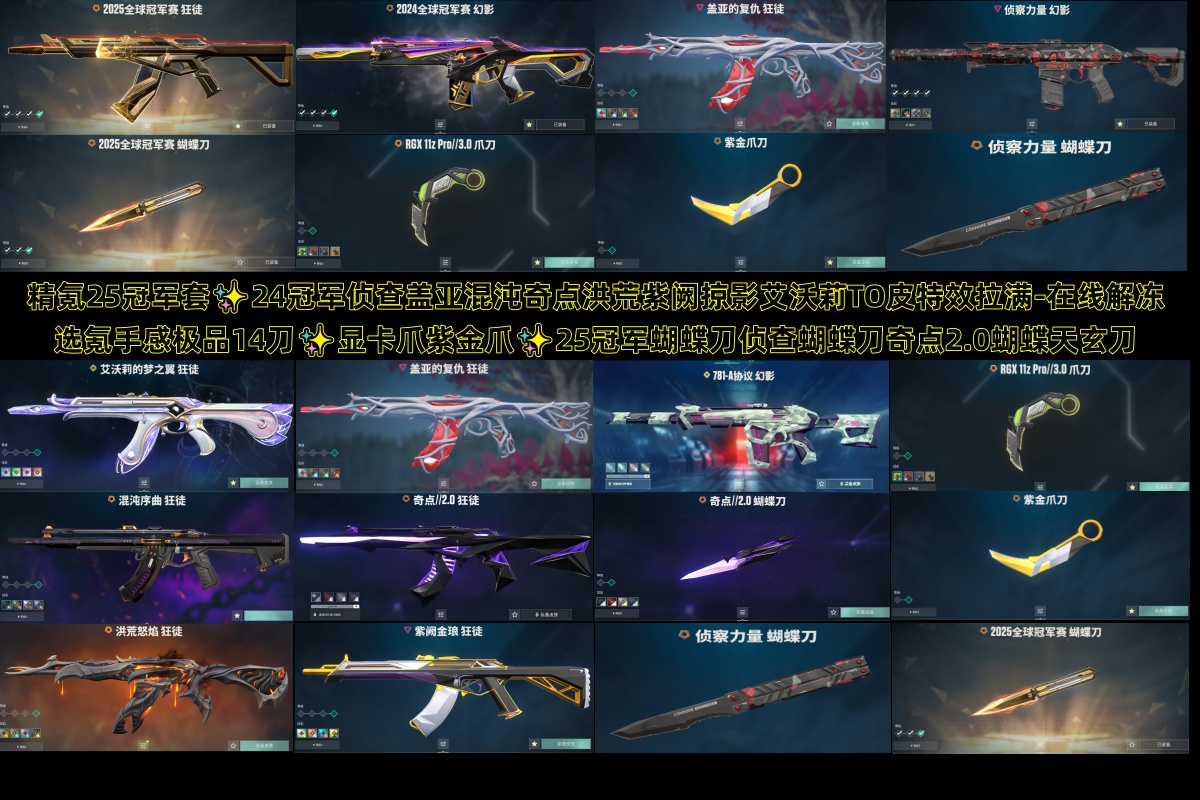 精氪25冠军套14刀✨显卡紫金爪25冠军侦查奇点蝴蝶刀✨24冠军侦查盖亚混沌奇点洪荒紫阙掠影艾沃莉皮;