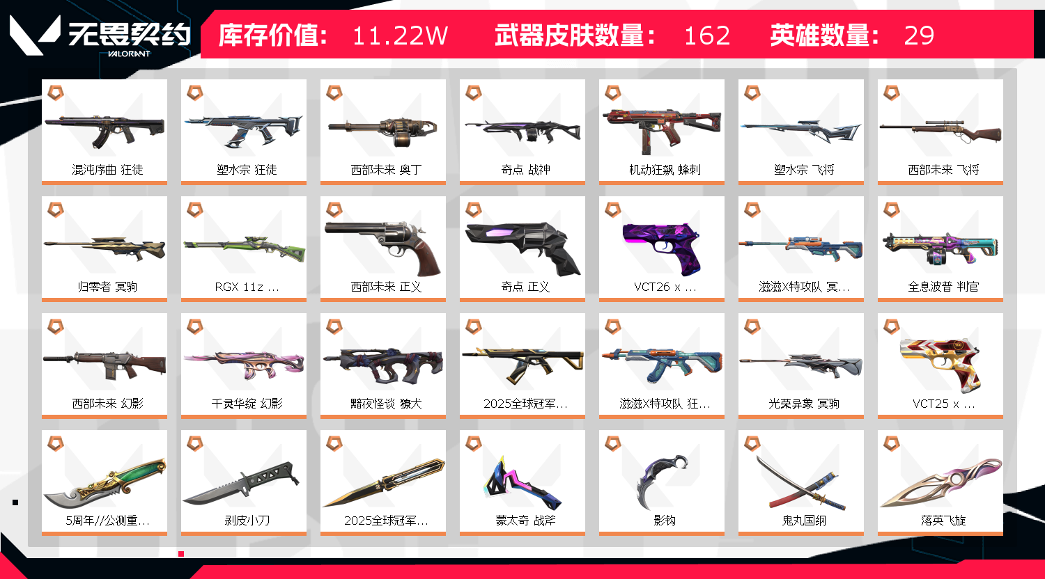 可排位🙅11w库存161皮✅25冠军套✅ 滋滋特攻队套✅西部未来套✅怜悯套✅三棱军刺✅掠夺2.0套