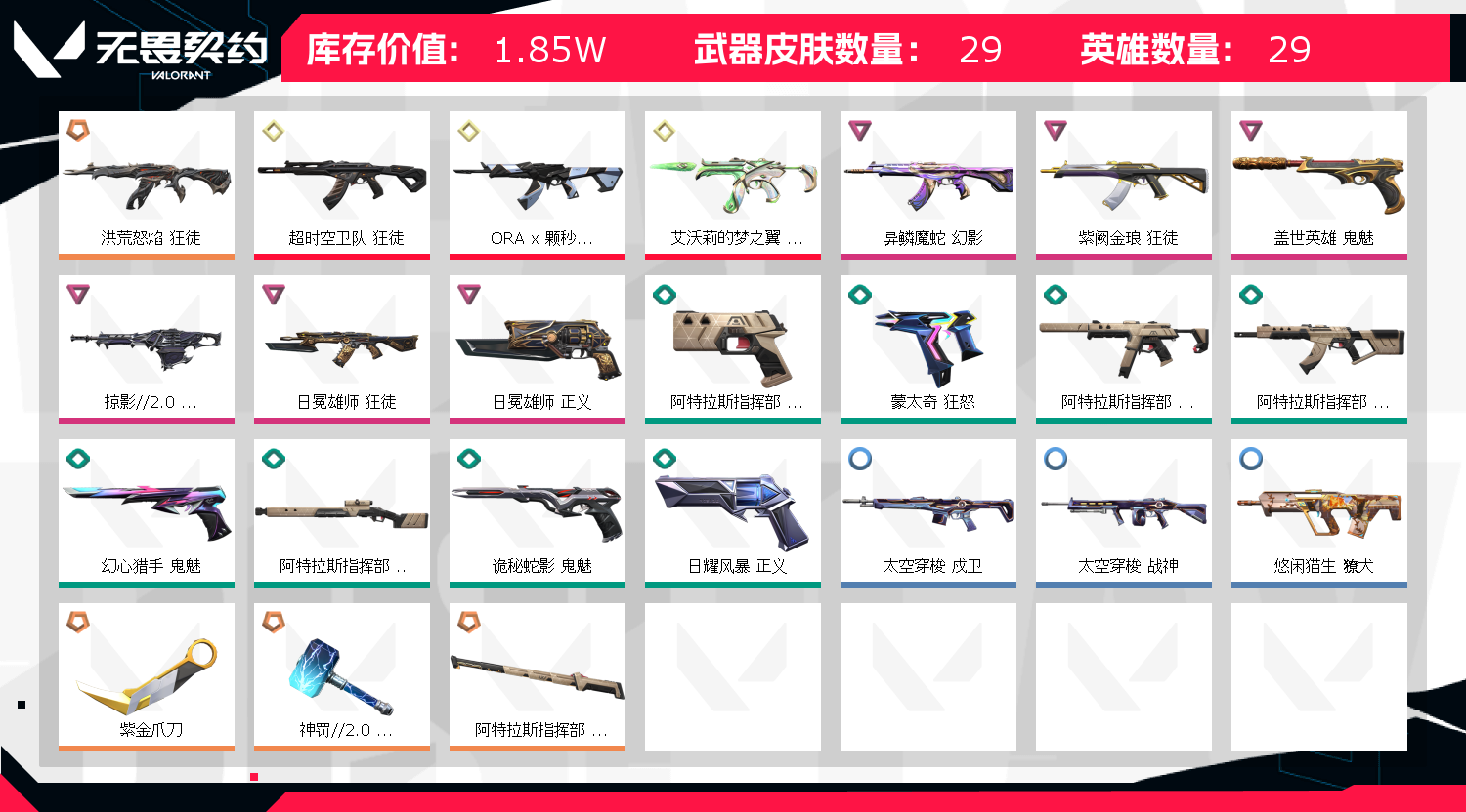 • 武器皮肤数量: 29