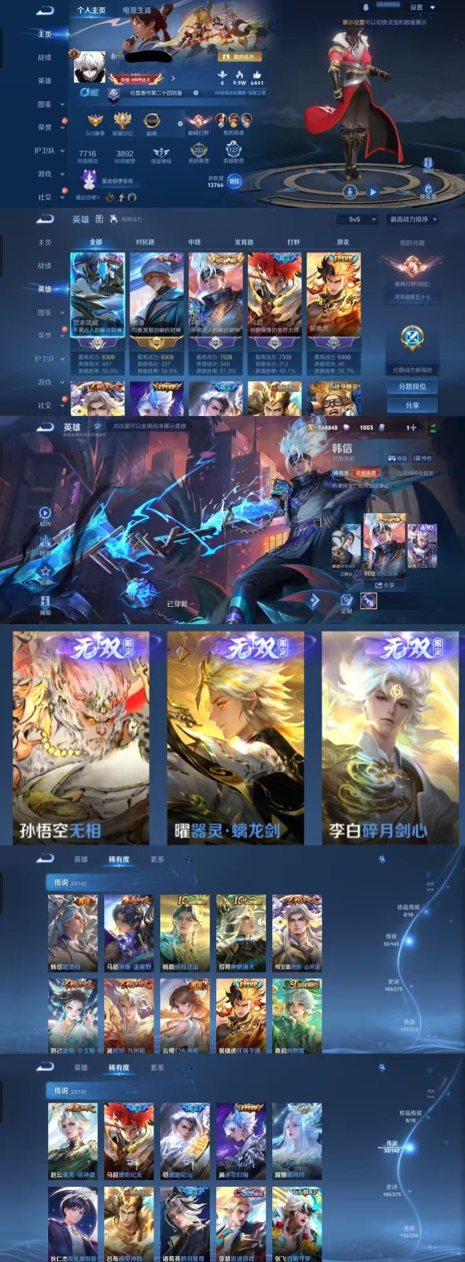 【非沄直接上号】极品V10★三历史国标★430皮★六典藏★诸葛亮新典藏★虎年五限定★鸣剑戈影★活力突击️★多限定
