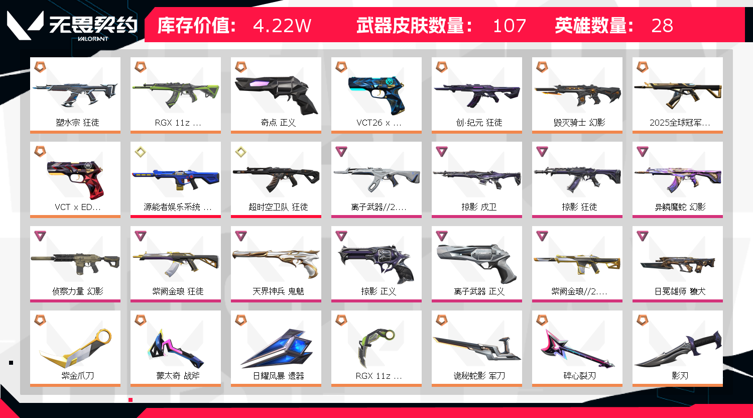 首页 > 租号大厅 > 无畏契约-wegame > wegame/wegame > 4.2w库存✨25冠军✨掠影套✨紫金爪刀✨显卡爪刀✨显卡狂徒✨异鳞魔蛇幻影✨创纪元狂徒✨奇点正义