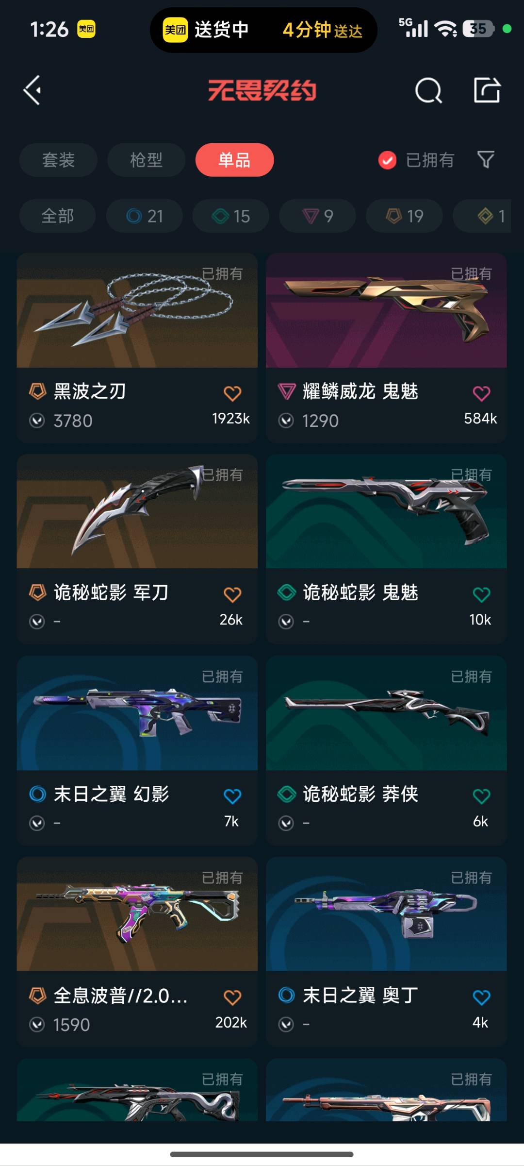 5k库存|21ak|堕天遗武大狙|奇点正义|混沌ak|掠影ak|归零獠犬|显卡莽侠|威龙|水波之刃