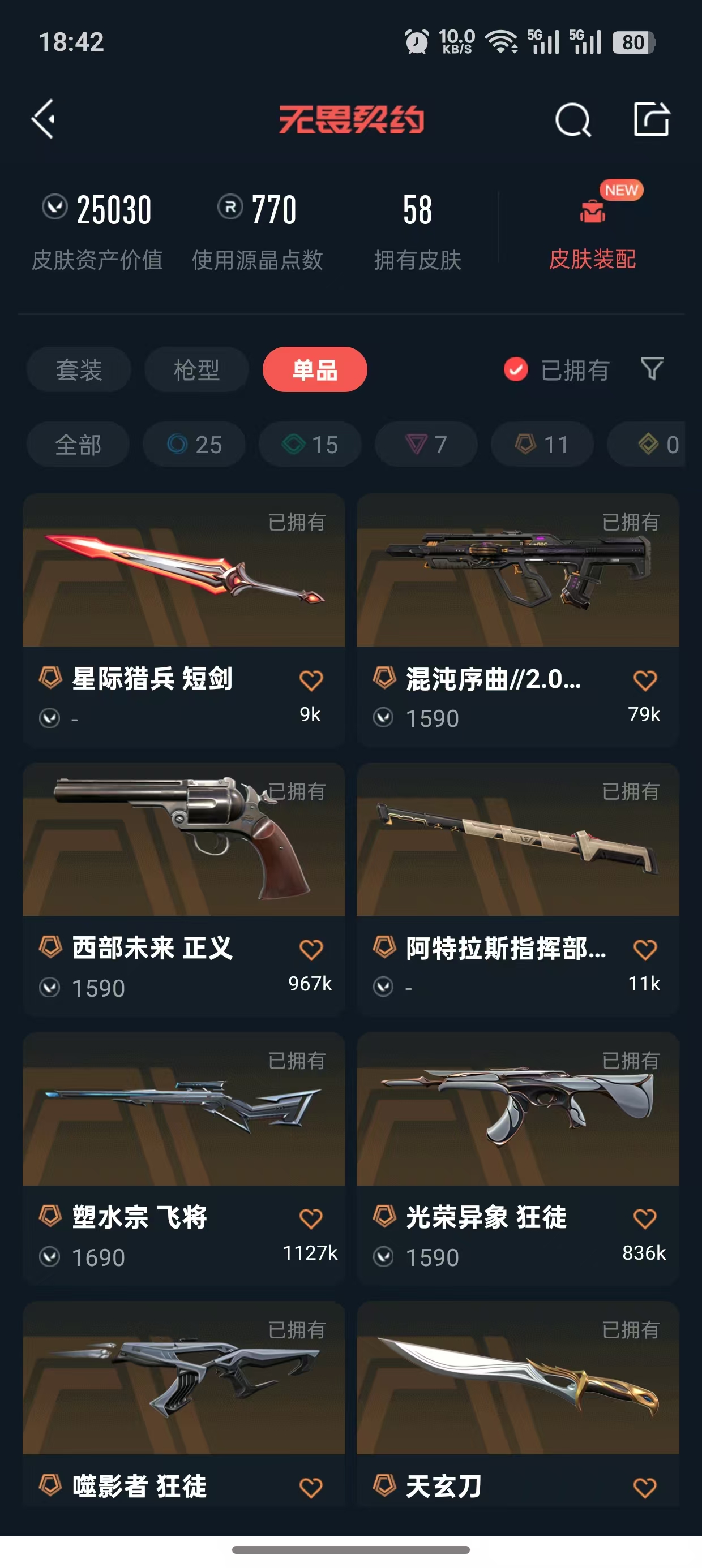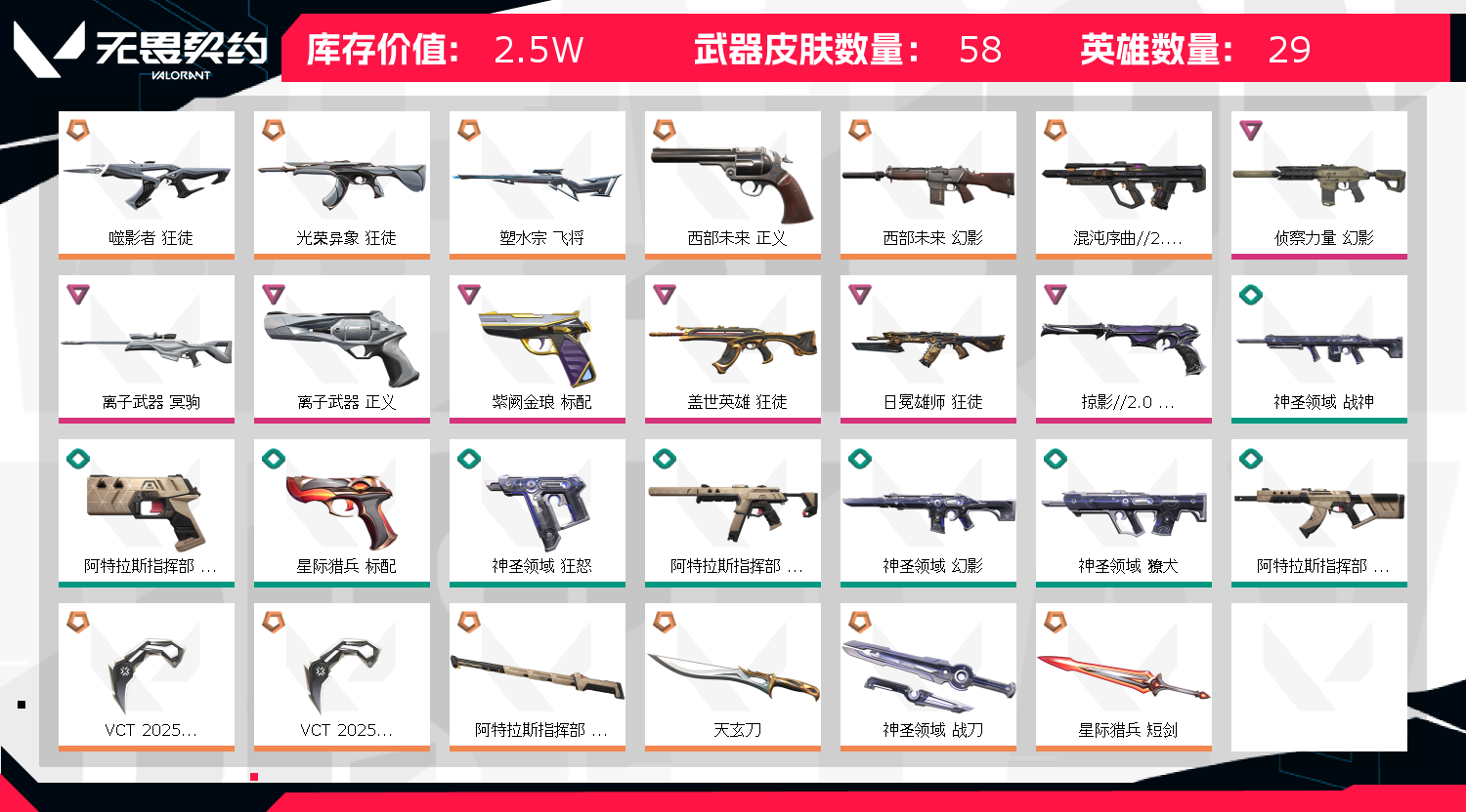 • 皮肤资产价值: 25030