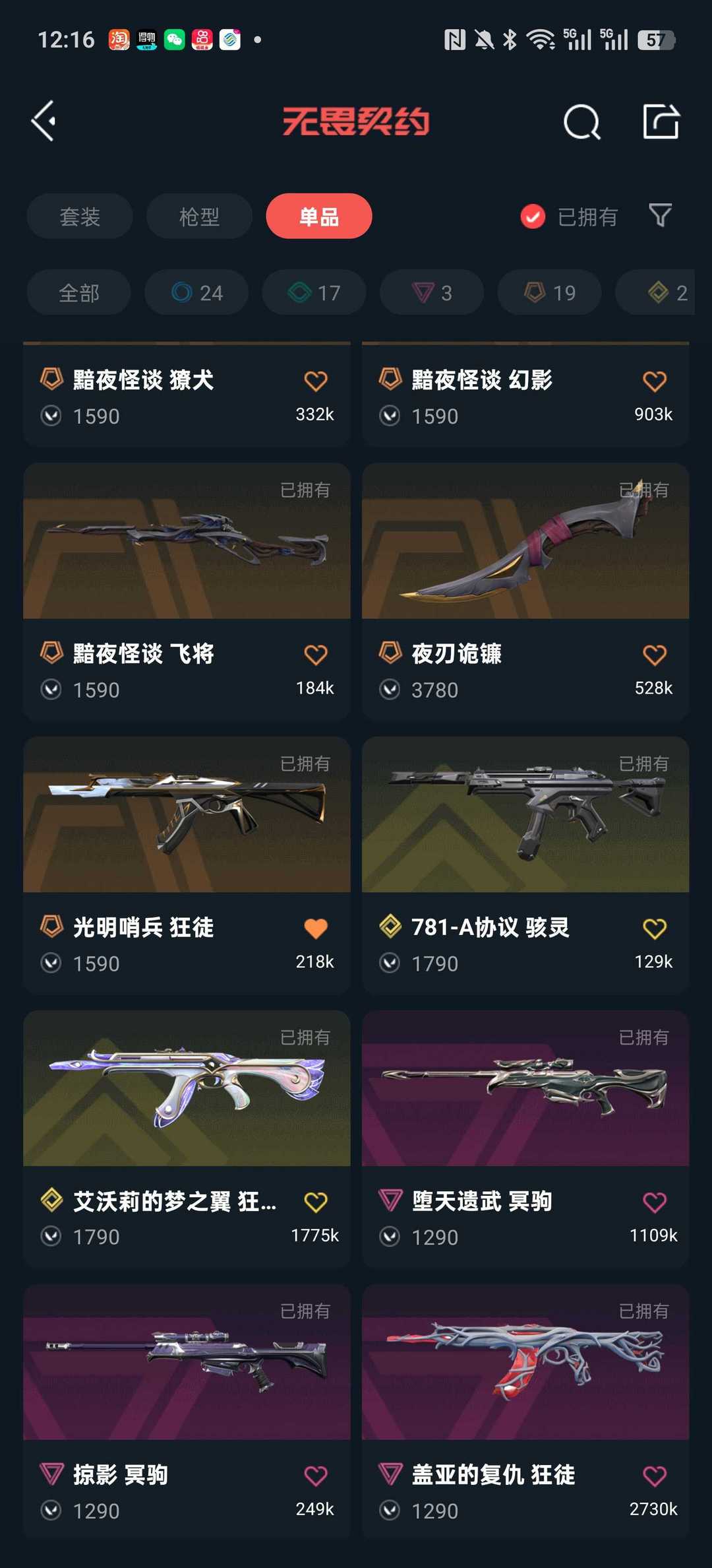 6w库存✨黯夜怪谈套装✨奇点2.0套装✨千灵华绽幻影✨塑水宗正义✨艾沃莉的梦之翼ak✨盖亚ak