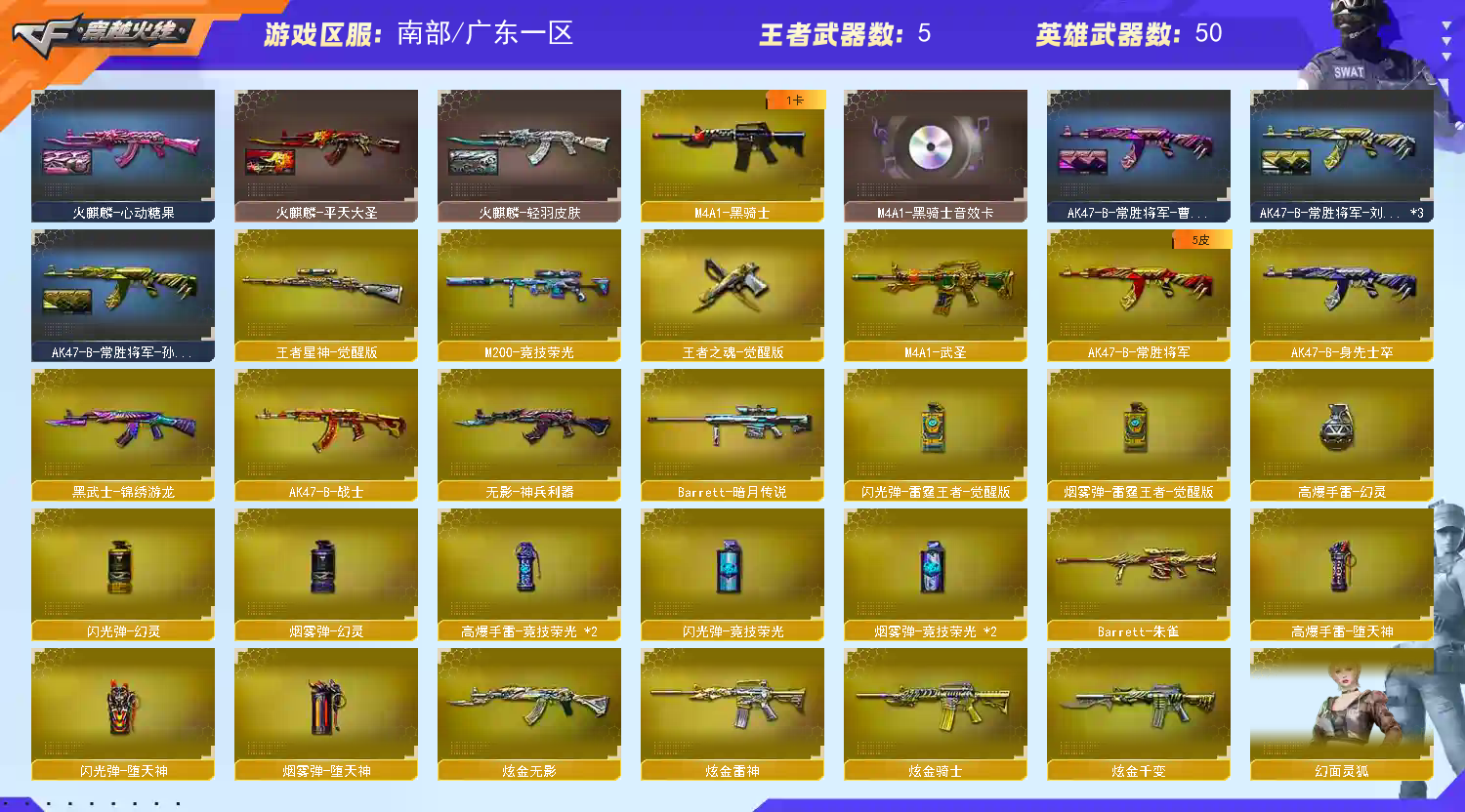 • 游戏区服:穿越火线 / 南部 / 广东一区
