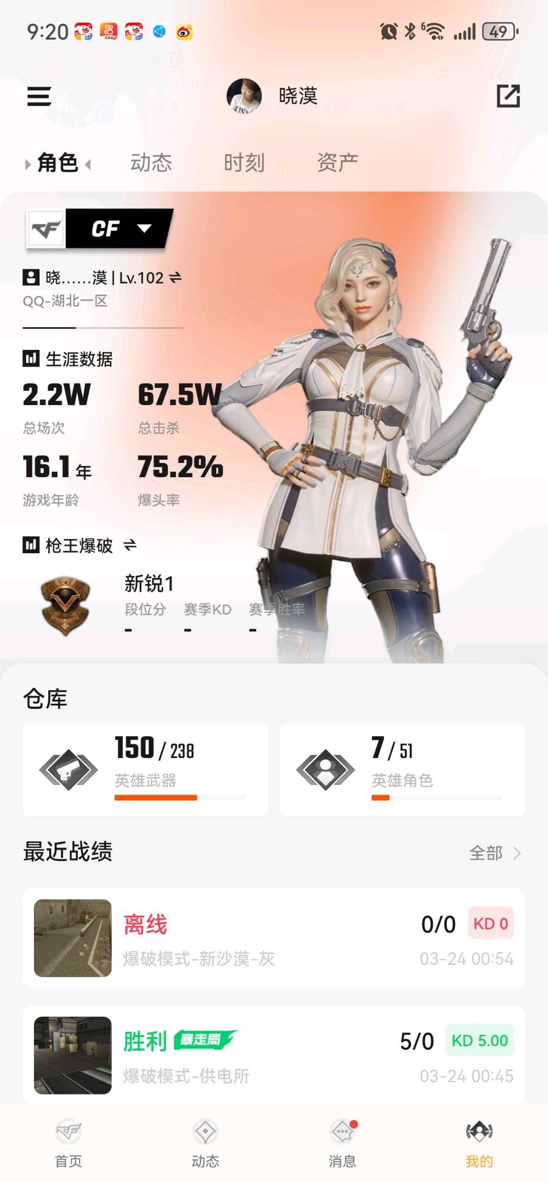 • 游戏区服:穿越火线 / 南部 / 湖北一区