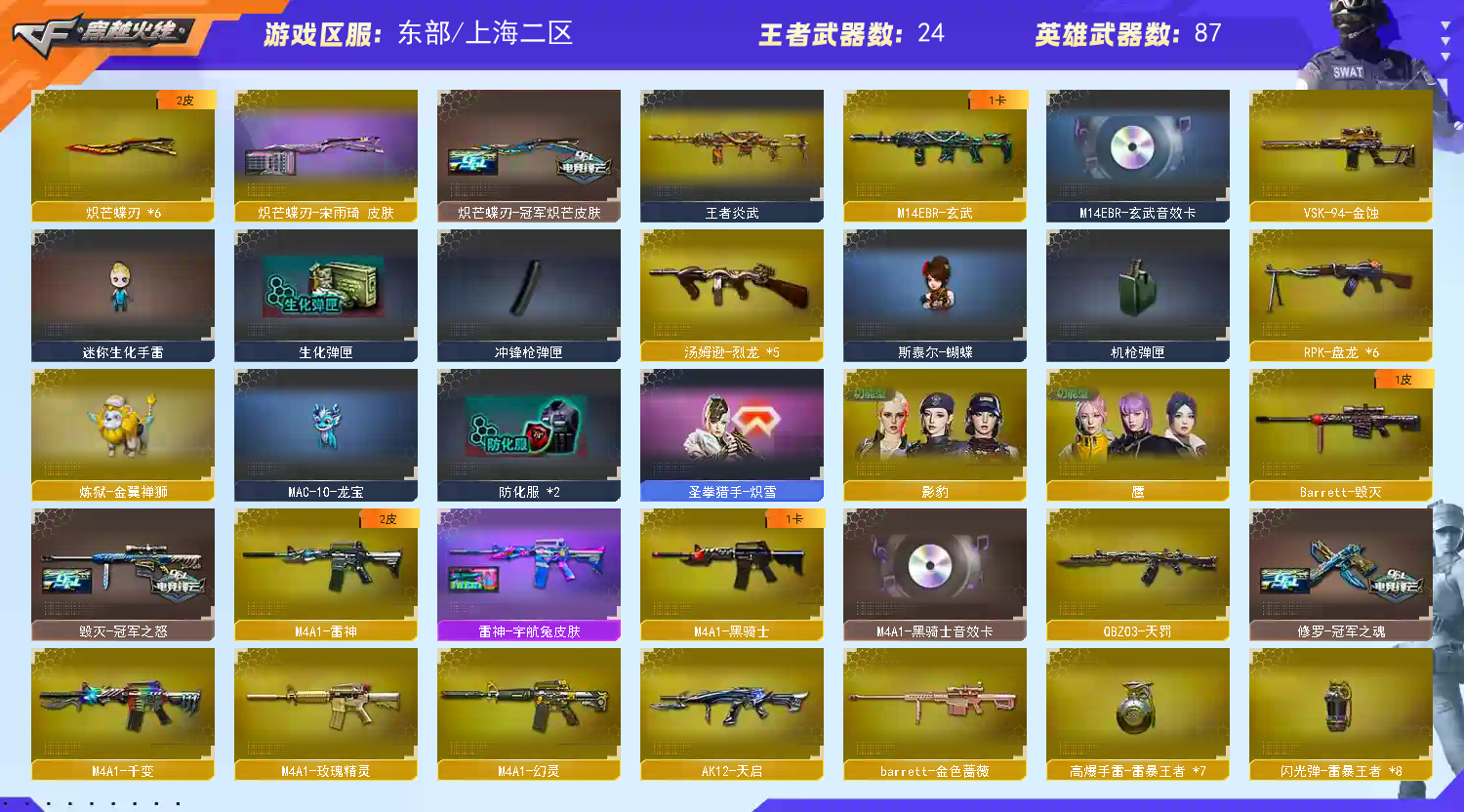 • 游戏区服:穿越火线 / 东部 / 上海二区