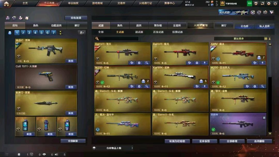 双全|四防艾丽莎|幻神宠儿三件套|裁决流光三件套|白虎qbz冠军之微|六烈六盘带蝴蝶小钢|满配副武器;USP-雷暴,炽芒蝶刃,电竞教官-云悠悠,传说艾莉莎,RPK-盘龙,QBZ03-金色蔷薇,M200-幻神,
