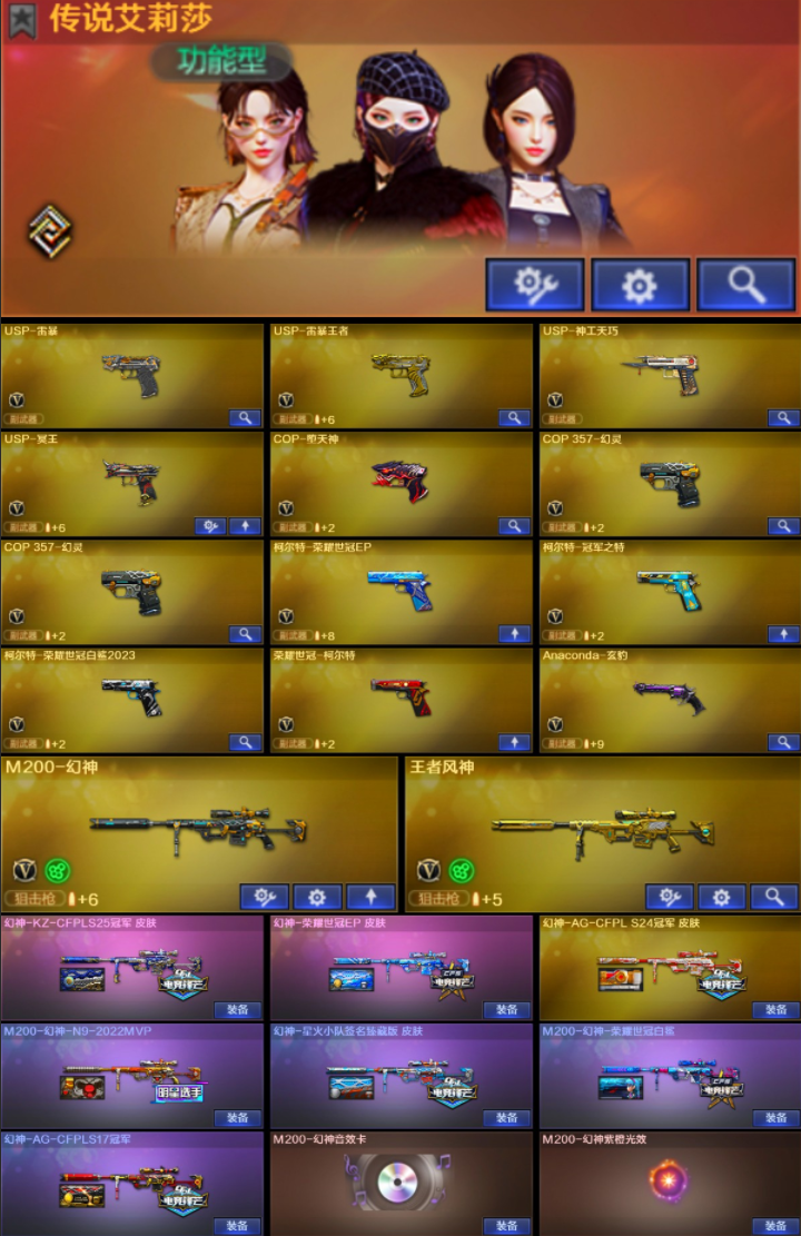 传说艾莉莎/KZ幻神三件套7皮/星神三件套5皮/裁决三件套/满配12副手/白虎三件/蝴蝶刀4烈4蝴蝶