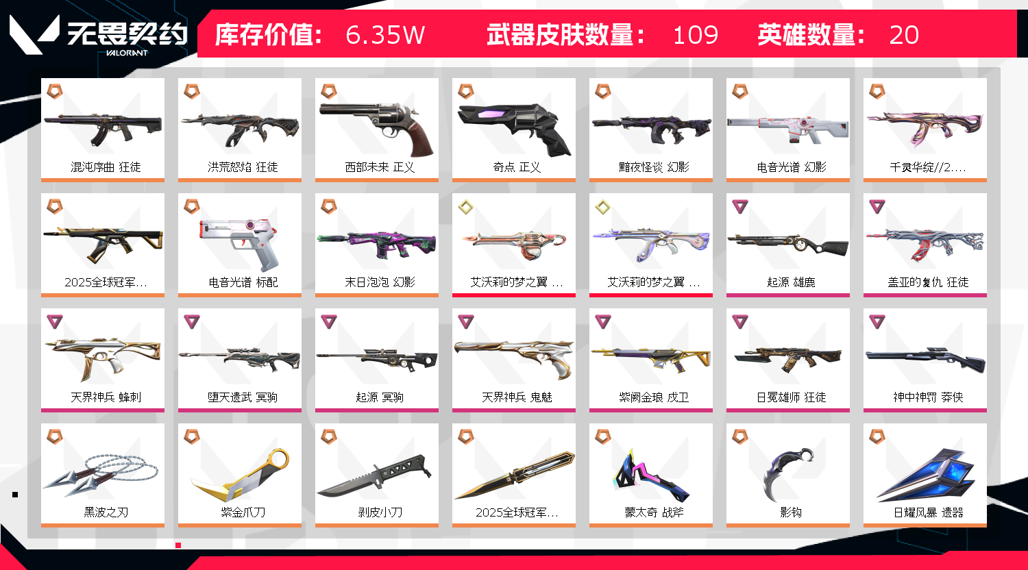 • 武器皮肤数量: 109