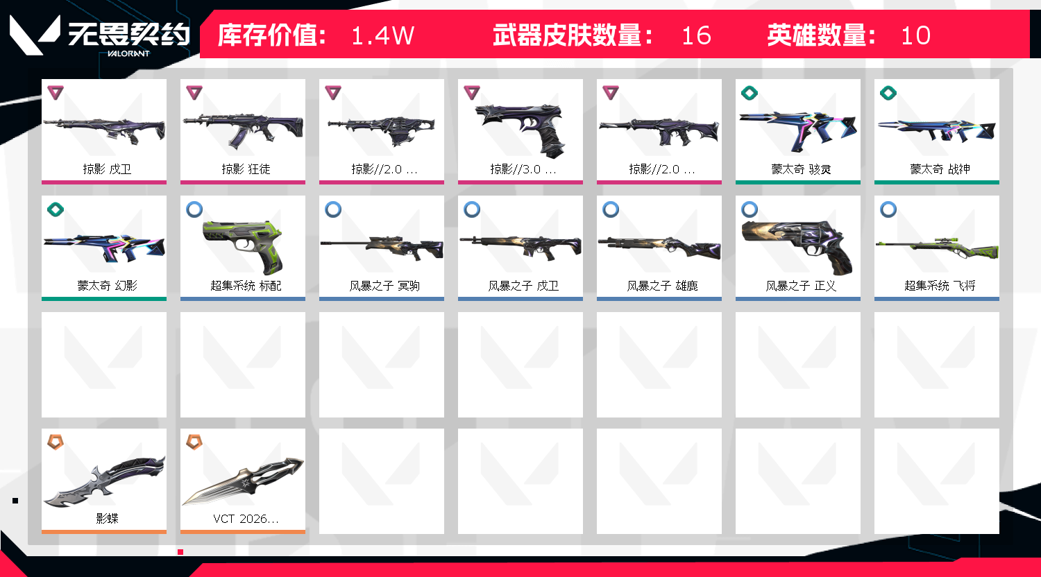 首页 > 租号大厅 > 无畏契约-wegame > wegame/wegame > 秒解冻2026vct限定掠影3.0掠夺1.0-2.0