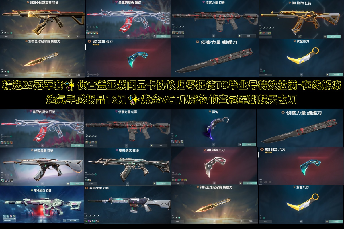 精选25冠军16刀✨紫金VCT爪影钩侦查冠军蝴蝶刀✨侦查盖亚紫阙显卡协议归零狂徒TO毕业号