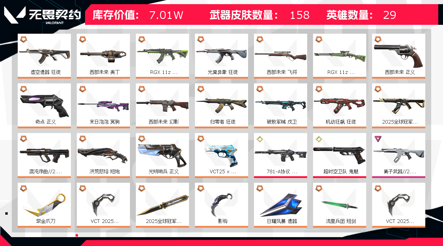 首页 > 租号大厅 > 无畏契约-wegame > wegame/wegame > 精选25冠军16刀✨紫金VCT爪影钩侦查冠军蝴蝶刀✨侦查盖亚紫阙显卡协议归零狂徒TO毕业号