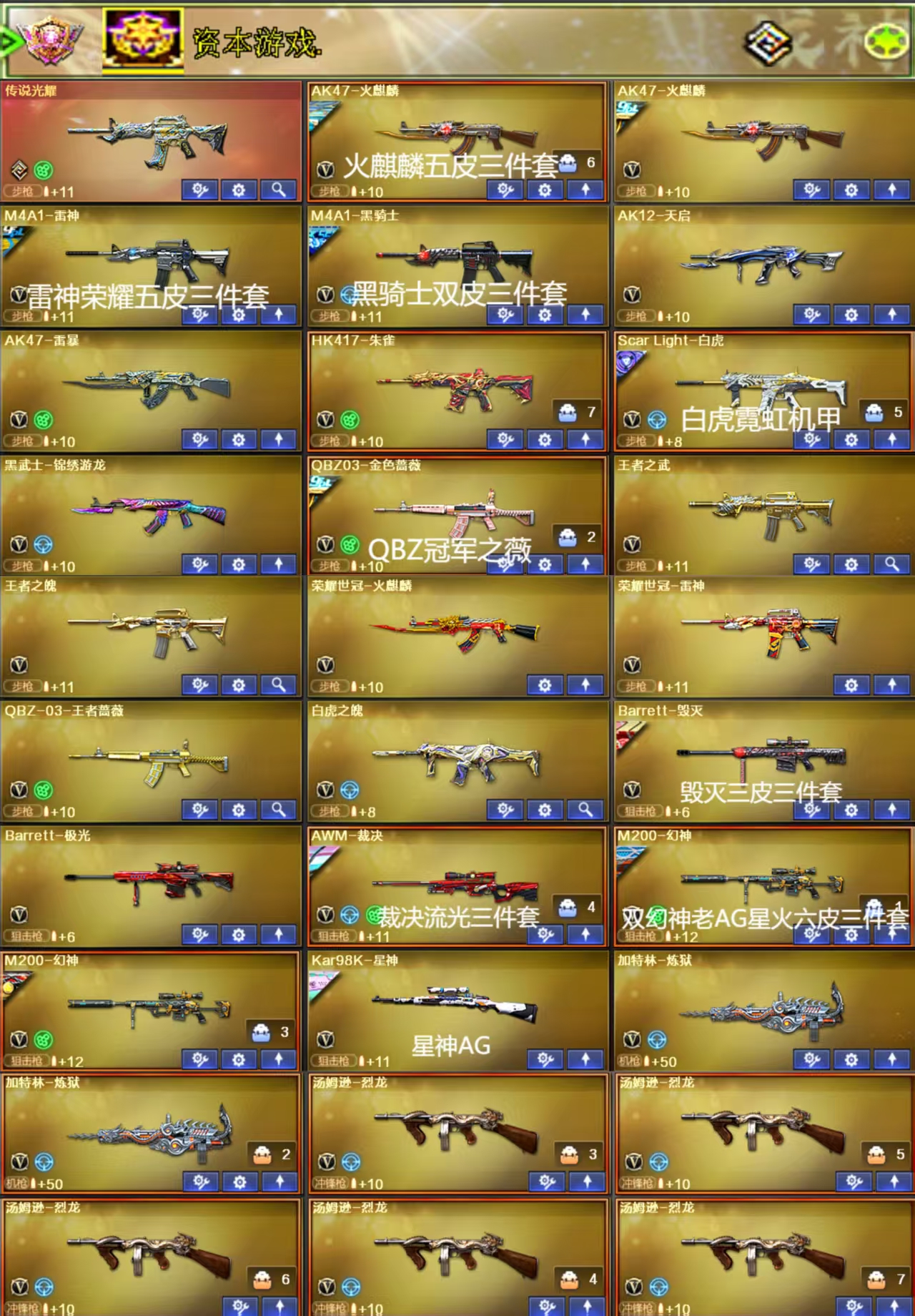 🍁金色id♥传说女帝艾莉莎♥2幻神星火6皮幻神音效卡♥星神AG♥裁决音效卡♥枪王之王名片♥副武器满