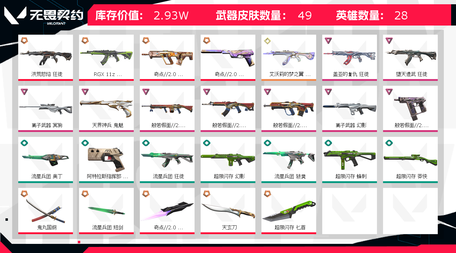 • 皮肤资产价值: 29300