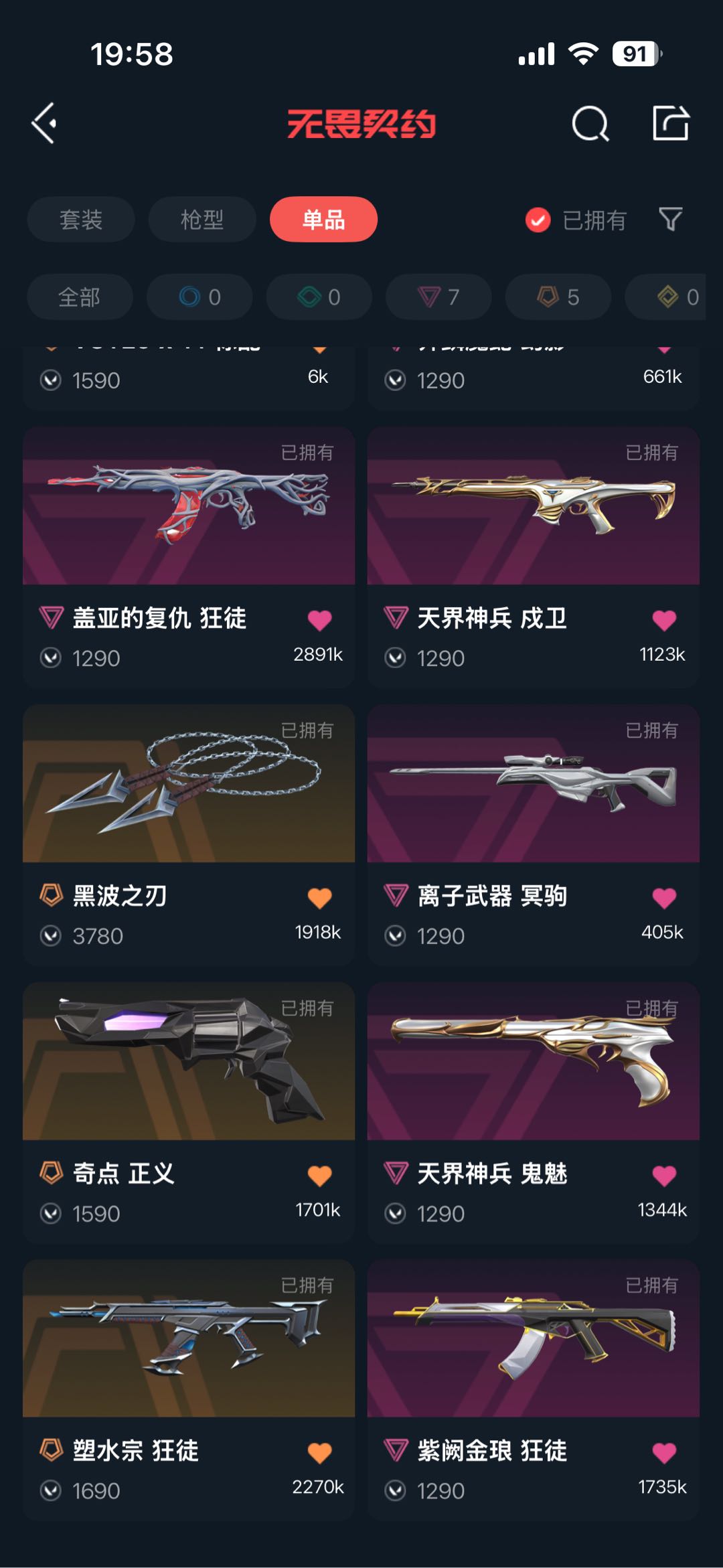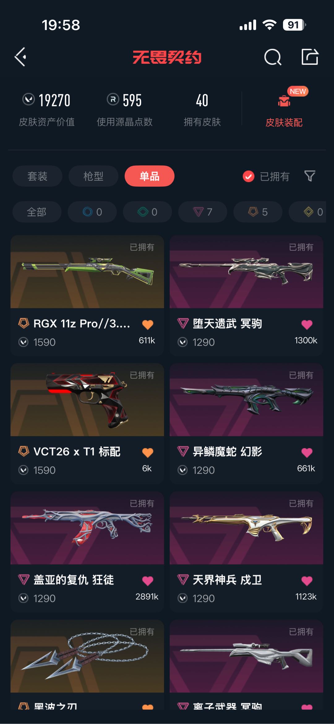 • 皮肤资产价值: 19270