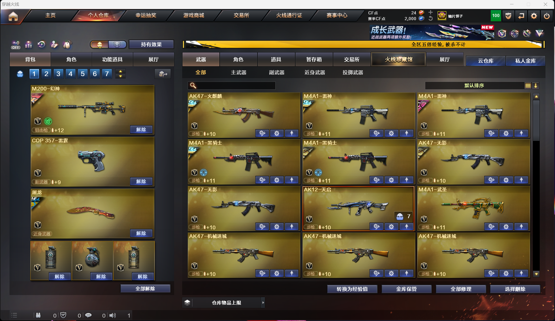 晨晨90V-M200幻神音效卡+cfs2022皮肤7手枪云悠悠/雷神宠儿皮肤