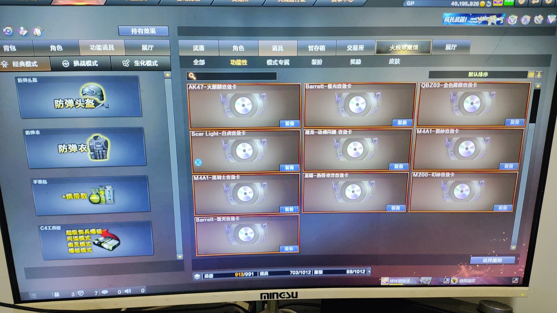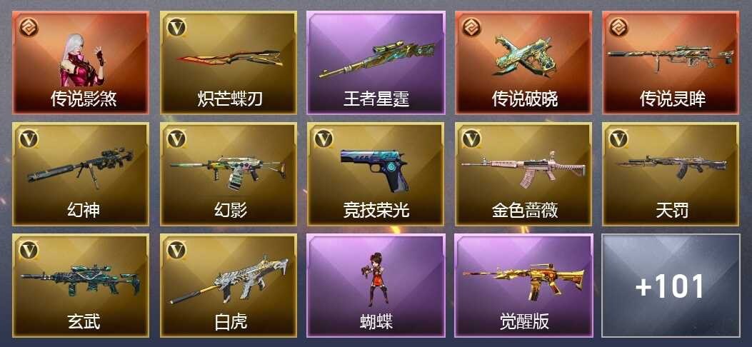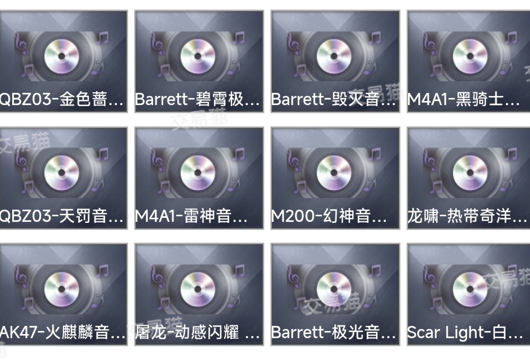 主流武器都有音效卡;炽芒蝶刃,传说影煞,RPK-盘龙,QBZ03-金色蔷薇,G36C-幻影,炼狱-泡泡象,M200-幻神,