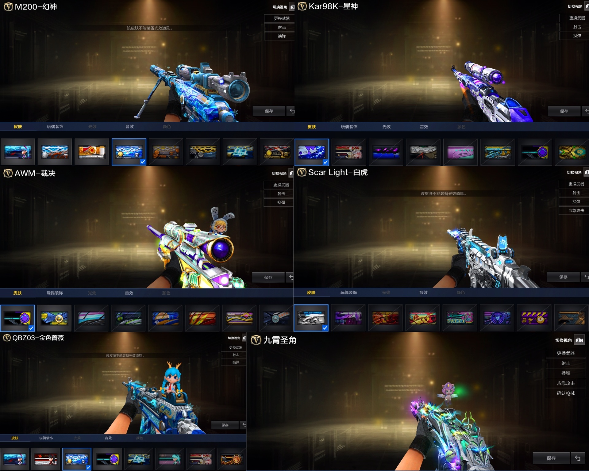 幻兽5套九霄圣角幻影♥幻神4皮EP星火AG♥裁决音效卡巅峰♥白虎白鲨QBZ4皮EP♥3柯尔特枪王名片