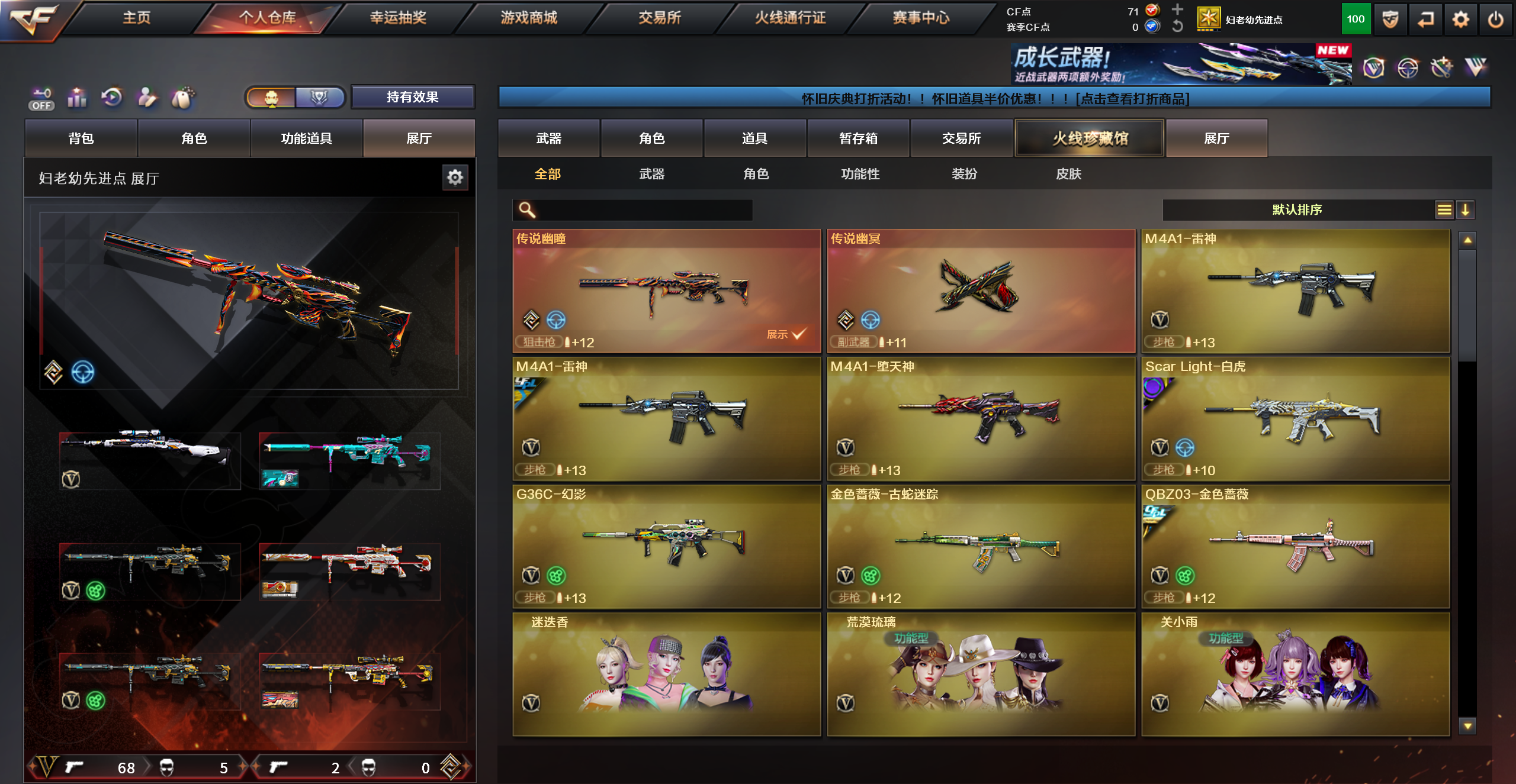 首页 > 租号大厅 > 穿越火线 > 东部/江苏一区 > 爆破号传说幽瞳幽冥⭐幻神三皮三件套⭐冠薇QBZ三件套⭐荣耀M4三件套⭐白虎G36C黄金猫手套炽芒蝶刃