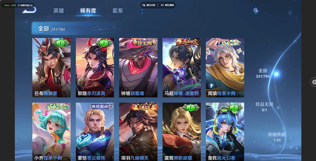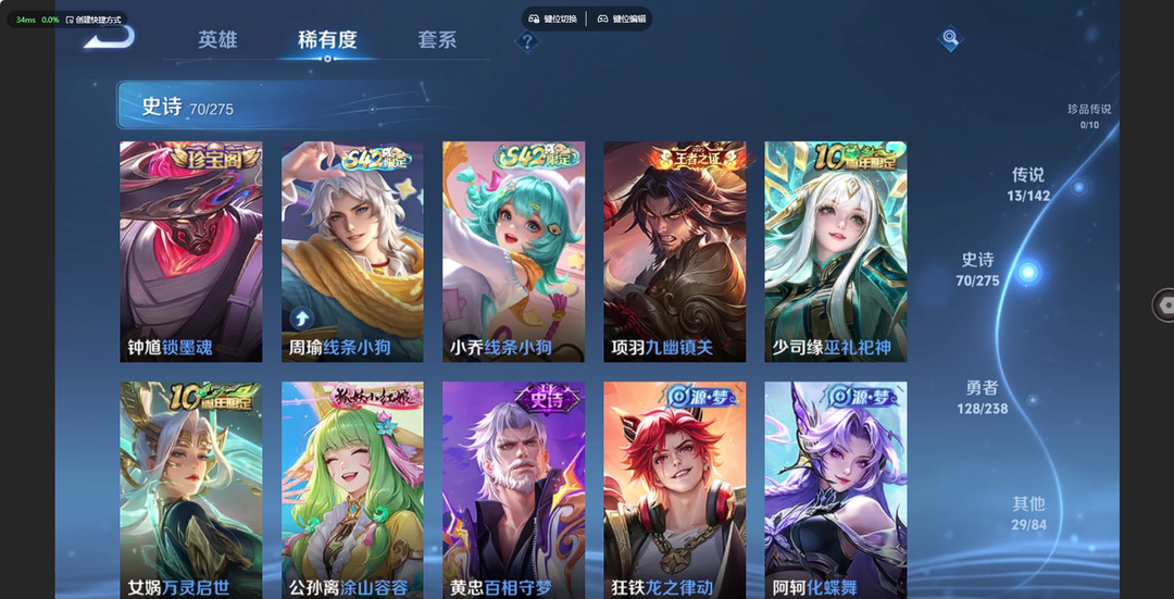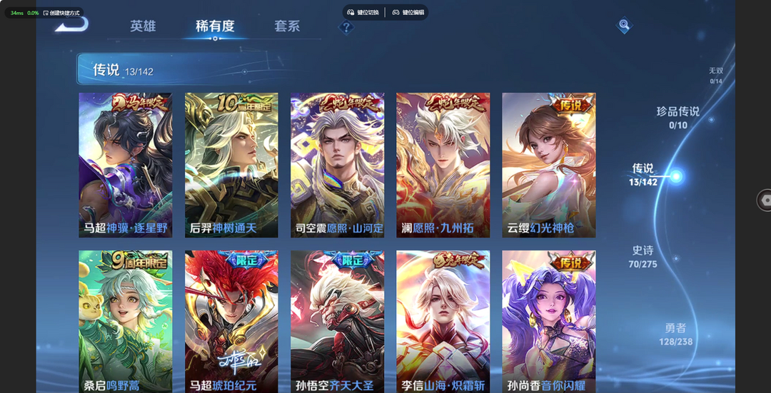 V10、550皮14水、吕布典藏-千魇归渊、云缨-神骥·越千峰、怪盗基德、伽罗星传说红枫、瑶典藏拾光映像、冥王哈迪斯、、龙年限定、齐天大圣